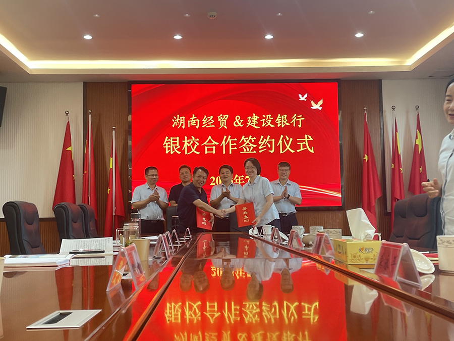会上,中国建设银行湘潭分行与我校签署了合作协议。