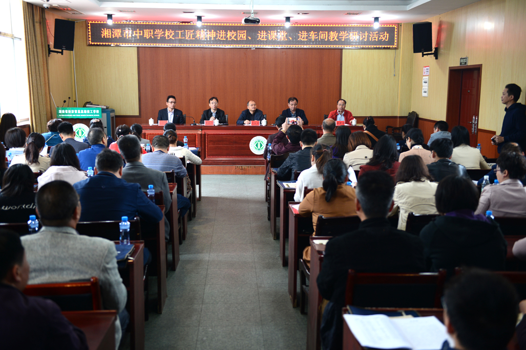 10月16日,湘潭市中职学校“工匠精神进校园、进课堂、进车间”教学研讨活动在我校进行,80多位来自全市所有中职学校教学副校长、教务科长以及教学业务骨干教师参加了此次研讨会。