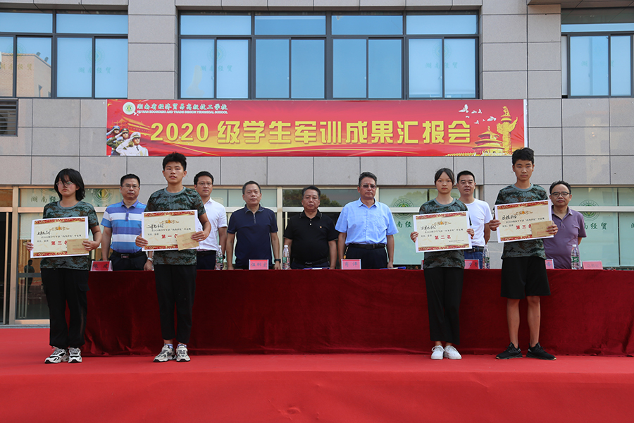 会上还对军训期间内部评比、军训会操比赛进行颁奖。校长肖评、校党委书记刘建伟分别为军训会操、内务评比第一名、第二名进行颁奖。