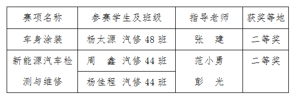 新能源汽车检测与维修项目获二等奖