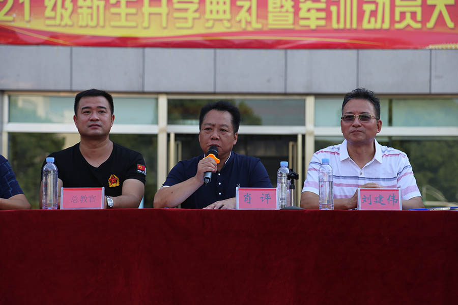 动员会上,贺典教官代表全体军训教官发言,杨思敏代表全校新生进行发言,张攀引领全体新生庄严宣誓。最后,肖评校长宣布“2021级新生军训正式开始”,全体新生在肖校长的殷切期待下正式进入2021级秋季军训。