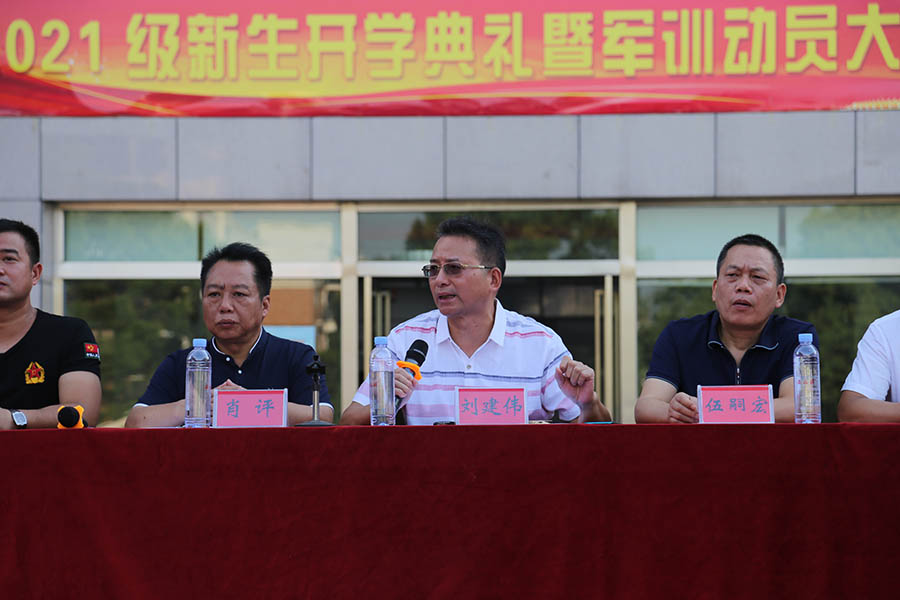 动员大会上,党委书记刘建伟作动员讲话。刘书记首先对新生们表示最热烈的欢迎,随后他强调军训的重要性,并希望大家自觉接受军训洗礼,在军训中培养艰苦奋斗的精神,磨砺坚强的意志,形成良好的团队精神和集体荣誉感,上好开学第一课。最后他寄语大家要树立服务社会、报效祖国的远大理想,承担起报国兴家的使命担当;要刻苦学习文化知识,增强创新创业本领,把省经贸作为新的起点,努力成为适应时代发展的高素质技能型人才,为学校增光添彩.