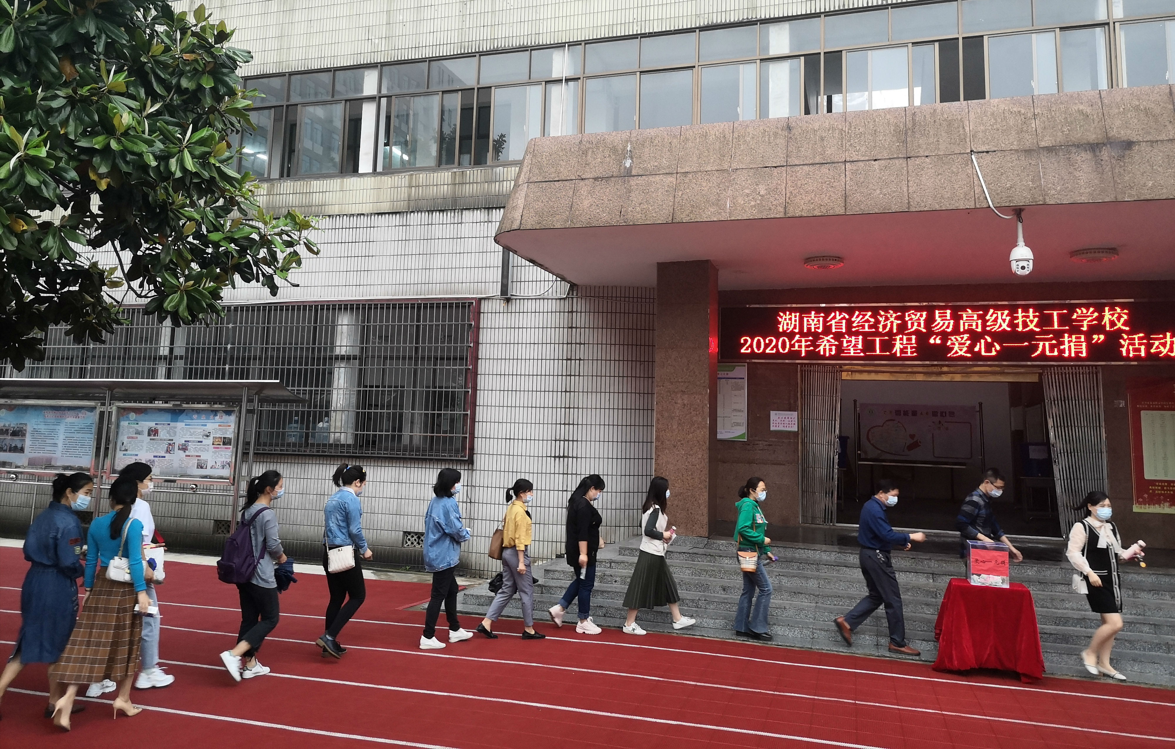 校长兰录平、党委书记肖评带头捐款,全体师生有序排队,积极奉献爱心,传递真情,此次募捐,全校共筹得爱心款7562元。