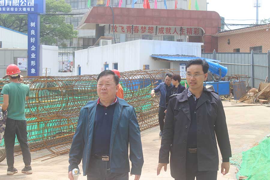 张炳生副厅长、熊小兰副局长一行视察我校粮油实训综合大楼建设工地