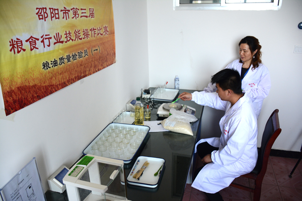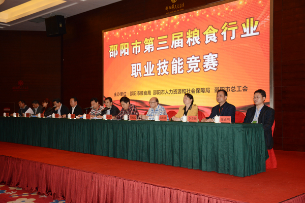 邵阳市粮食局、邵阳市人力资源和社会保障局、邵阳市总工会联合举办的邵阳市第三届粮食行业职业技能竞赛于2016年4月26日至4月28日在邵阳举行。本次竞赛有粮油保管员、粮油质量检验员两个工种。应邵阳市粮食局的邀请,我校派出了李寿辉、伍嗣宏、刘湘珠、童国平四名专业教师担任竞赛裁判工作。