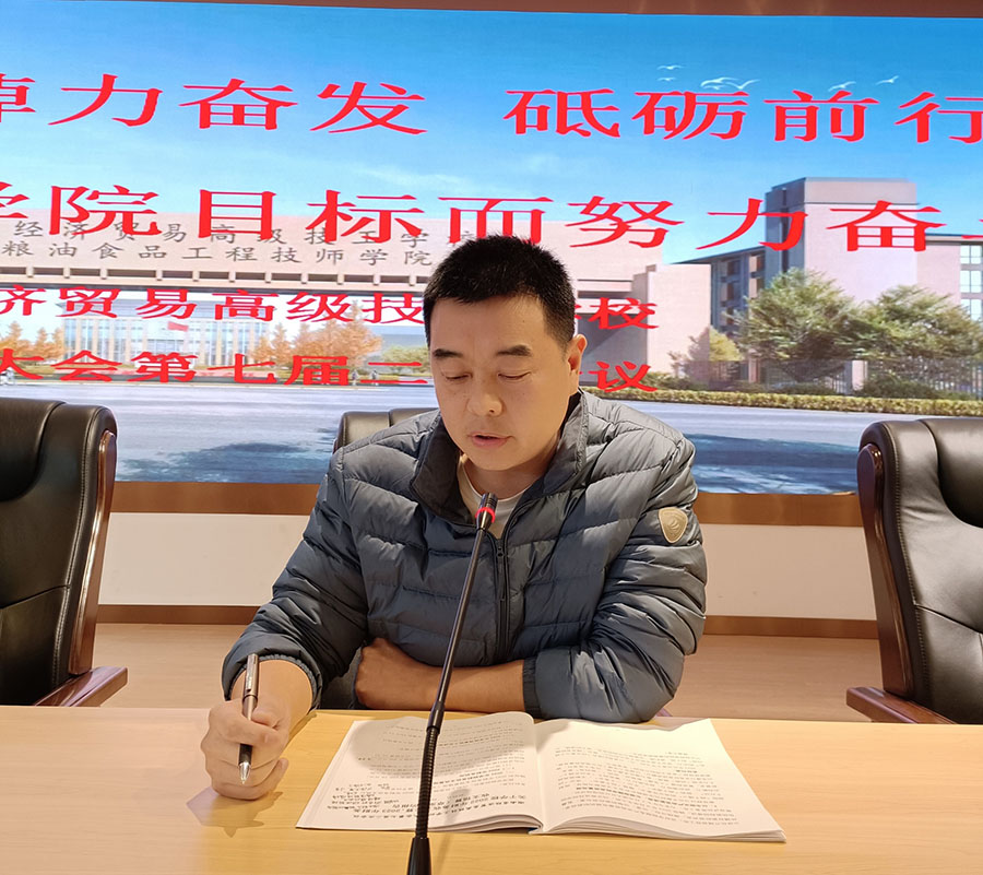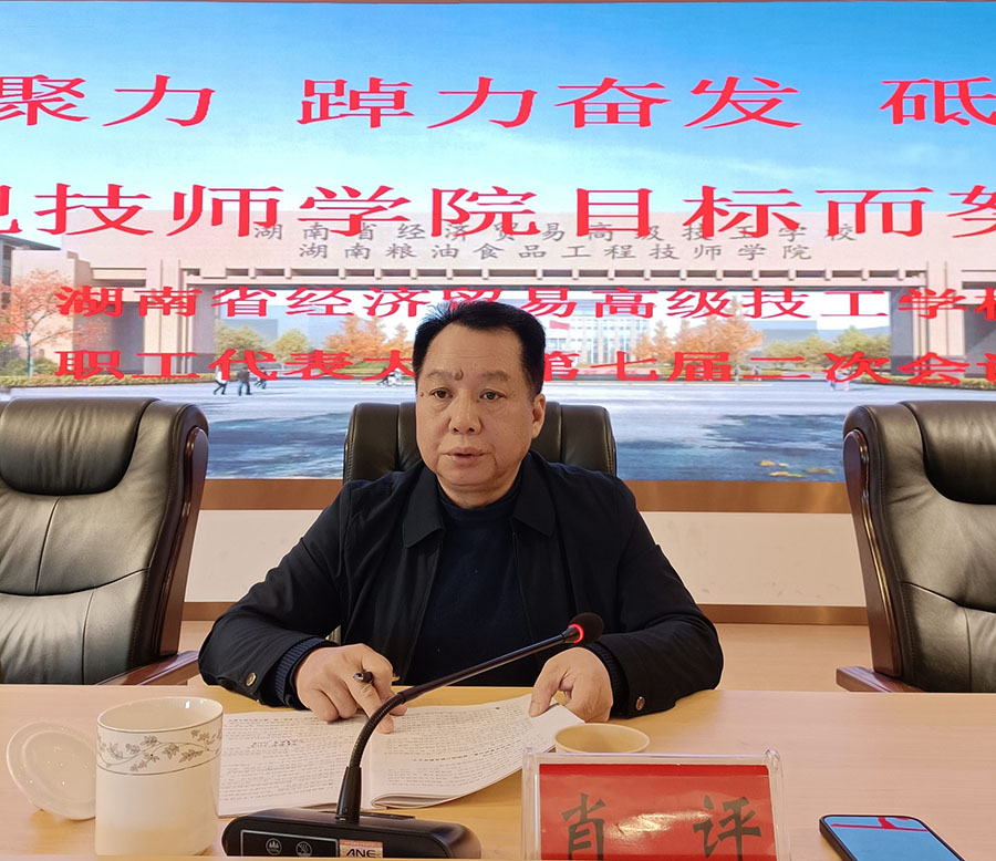 4月的校园,满目青葱,生机盎然。我校第七届职工代表大会第二次会议于7日下午在粮油实训综合大楼三楼多功能厅召开。校长肖评、党委书记刘建伟、工会主席谭峰在主席台就座,其他校领导和职工代表出席了会议,相关科室负责人列席了会议。会议由党委书记刘建伟主持。