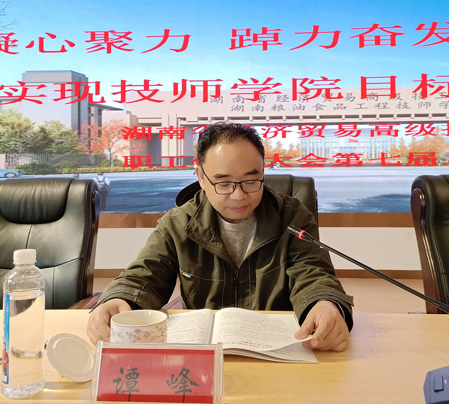 大会的主题是:凝心聚力,踔力奋发,砥砺前行,为实 现技师学院目标而努力奋斗!会议听取和审议了校长肖评所作的《学校行政工作报告》、副校长肖力青所作的《财务收支预决算报告》、工会主席谭峰所作的《工会工作报告》、工会经审委员、纪检监察室主任王超所作的《工会经费审计报告》、办公室主任余亚明对学校绩效工资分配方案进行了解读、招生就业办主任莫珍贵对学校2023年招生工作方案进行了解读。