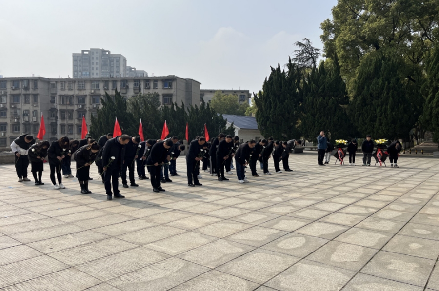 当天9时30分,烈士陵园松柏苍翠环绕如肃,丰碑矗立巍峨挺拔,全体人员手持鲜花面向纪念碑列队肃立。全体人员奏唱《中华人民共和国国歌》,向革命烈士默哀,表达无限追思和缅怀之情。