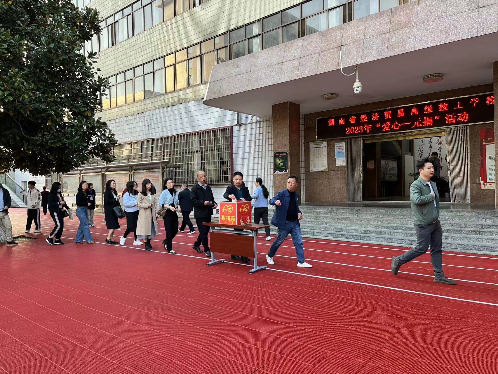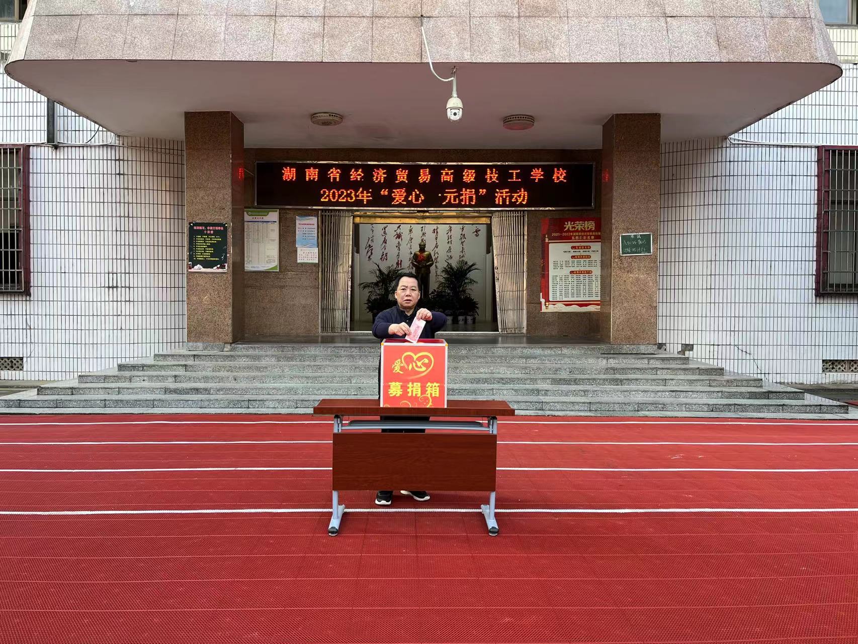 活动中,校长肖评、党委书记刘建伟带头捐献了爱心款,全体师生有次序的排着队伍,积极奉献爱心,传递真情,依次把爱心善款放进捐款箱内。