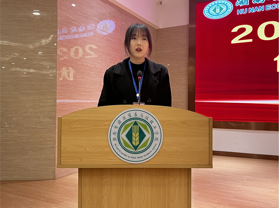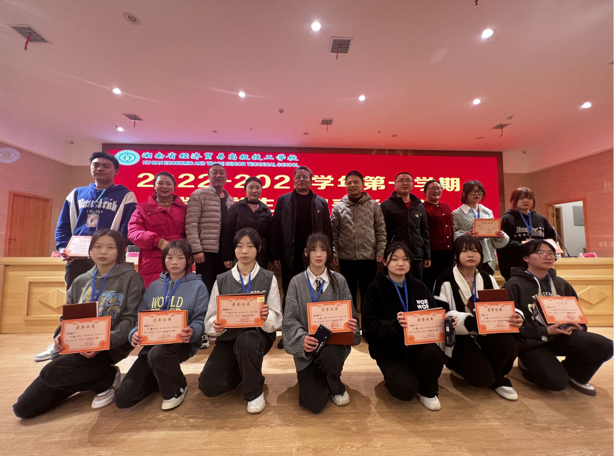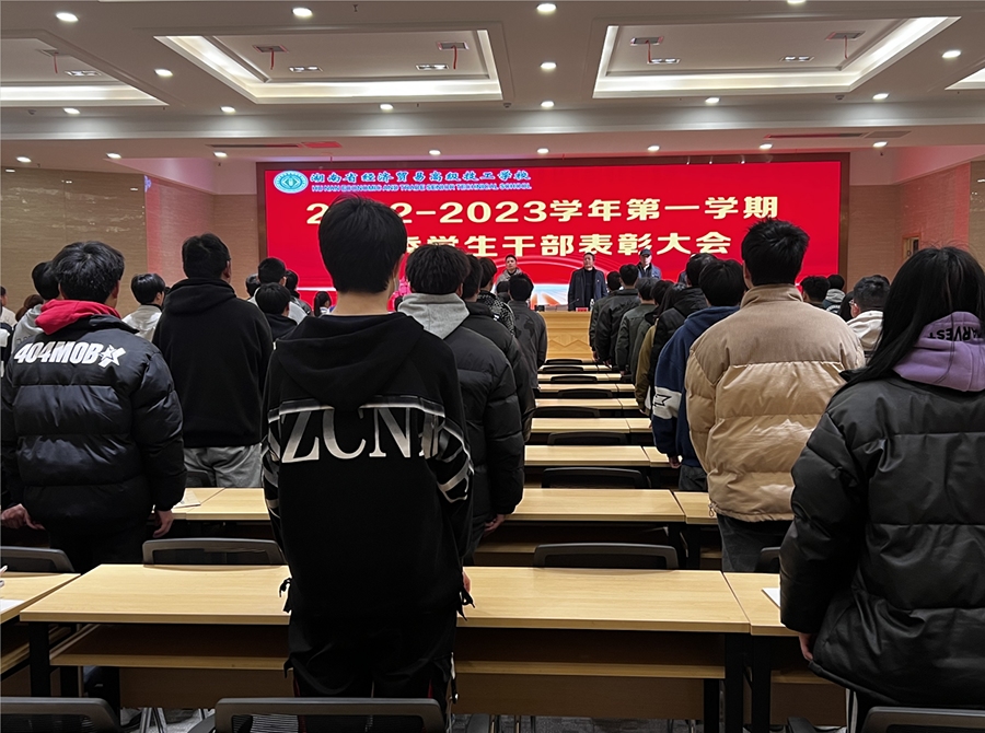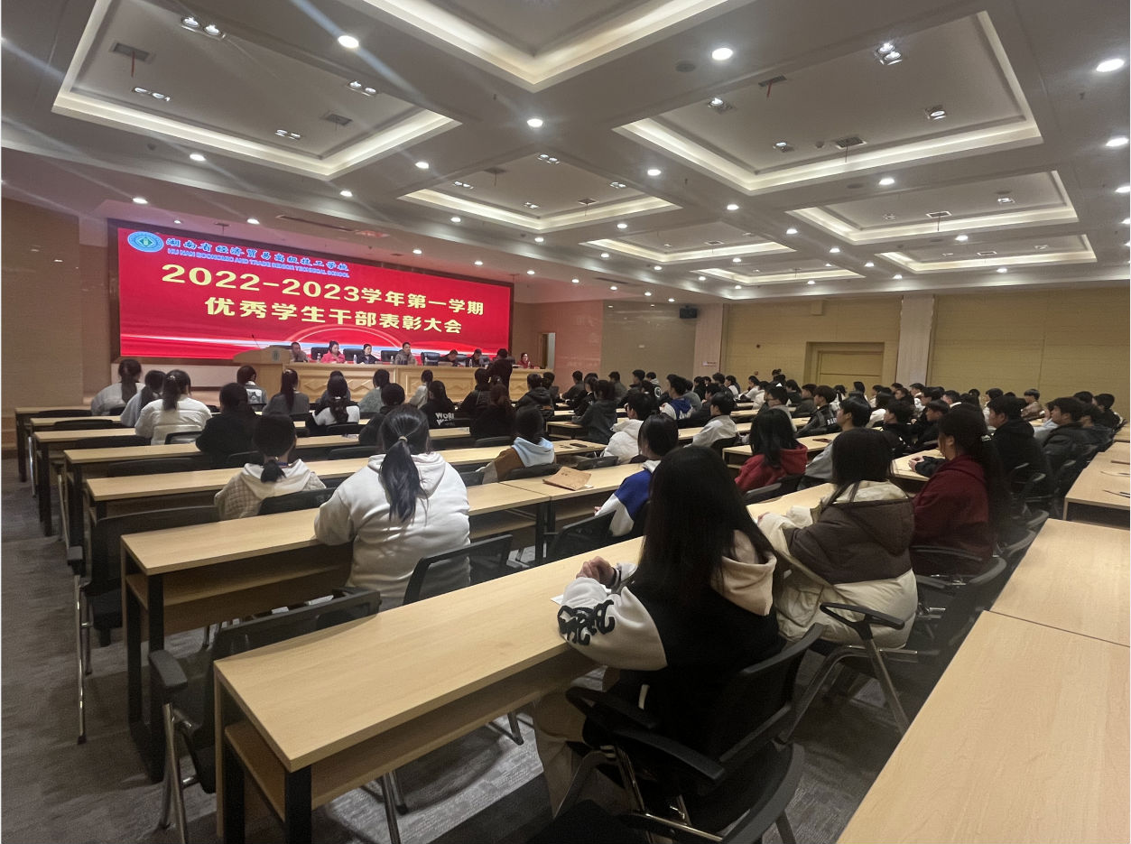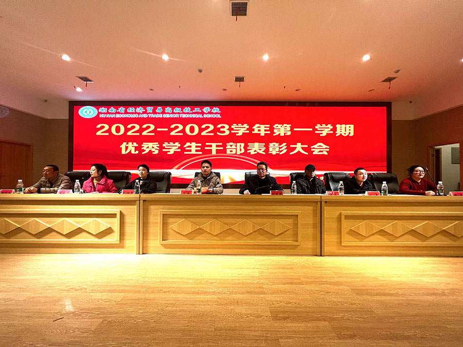 表彰大会在庄严的国歌声中拉开序幕。会上学生科科长张淼发言并宣读了2022学年第一学期优秀学生干部名单。校党委书记和学生科负责人分别为获奖代表颁奖。学生伍湘豫代表优秀干部发言,她感恩党和政府的关爱,感恩学校和老师的教育培养,并表示今后将不辱使命、不负韶华、不负未来,为学校争光添彩。