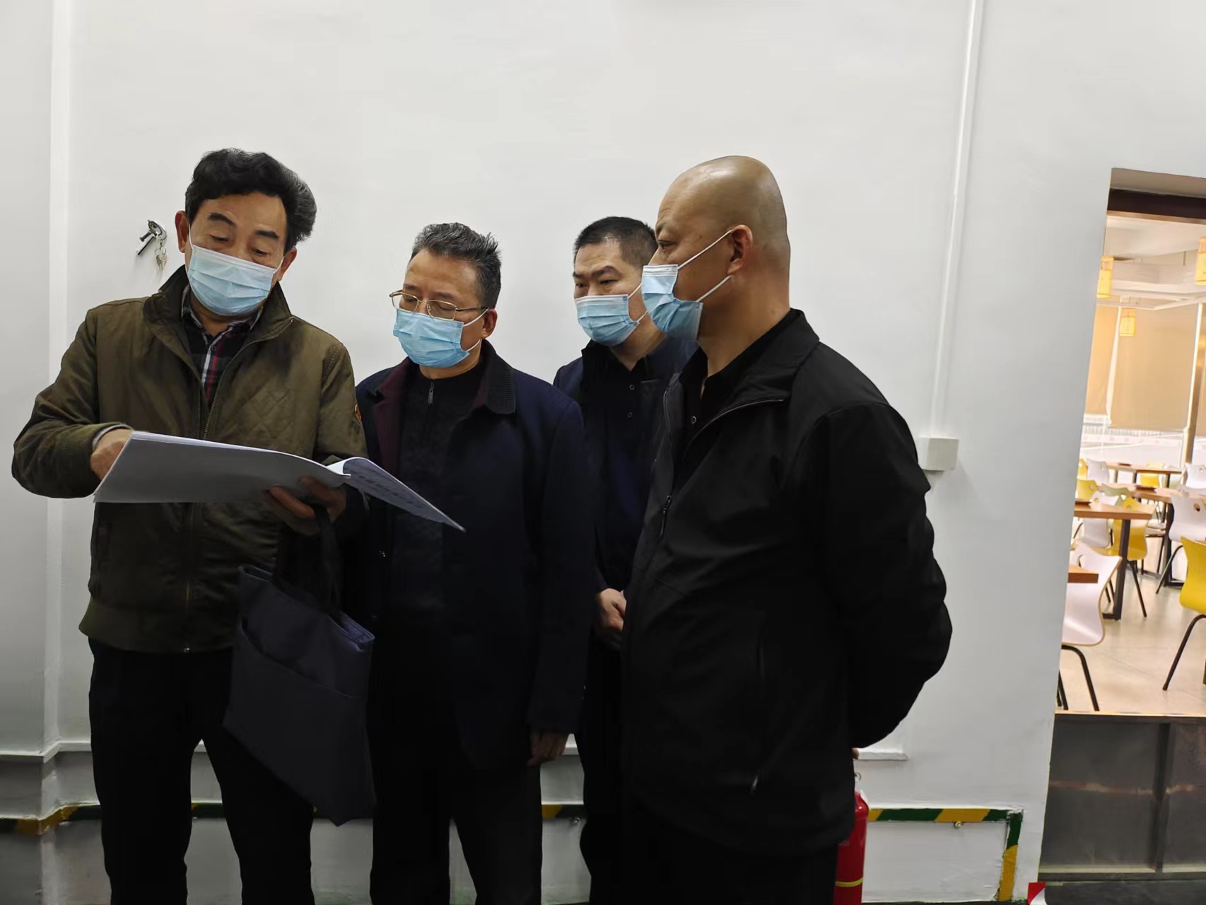 考核小组一行前往食堂、配电间、安防监控中心、实训车间、学生宿舍、教师值班室等重点场所进行了现场检查,对重点区域的消防设施设备、监控设施设备、食堂食材采购及食品安全、水电气使用及安全情况等进行了详细检查、察看和询问。