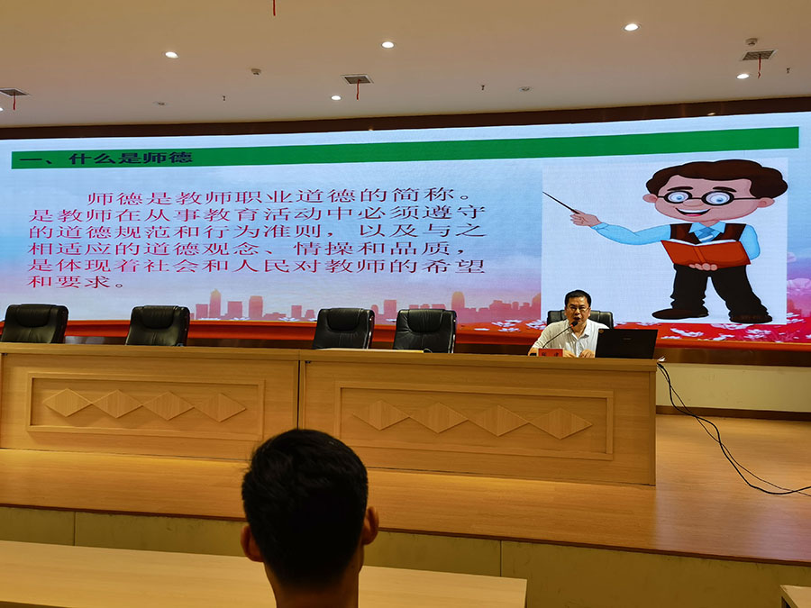 百年大计,教育为本;教育大计,教师为本;教师大计,师德为本。为进一步落实我校师风师德建设长效机制,切实提高教师职业道德素养,打造一支高素质的教师队伍,近日,我校党委委员、教务科科长张建以《坚持四个统一,涵养高尚师德》为题进行了一场高质量的师德师风建设专题讲座。讲座由教务科副科长李淑红主持,全校教职员工参加。