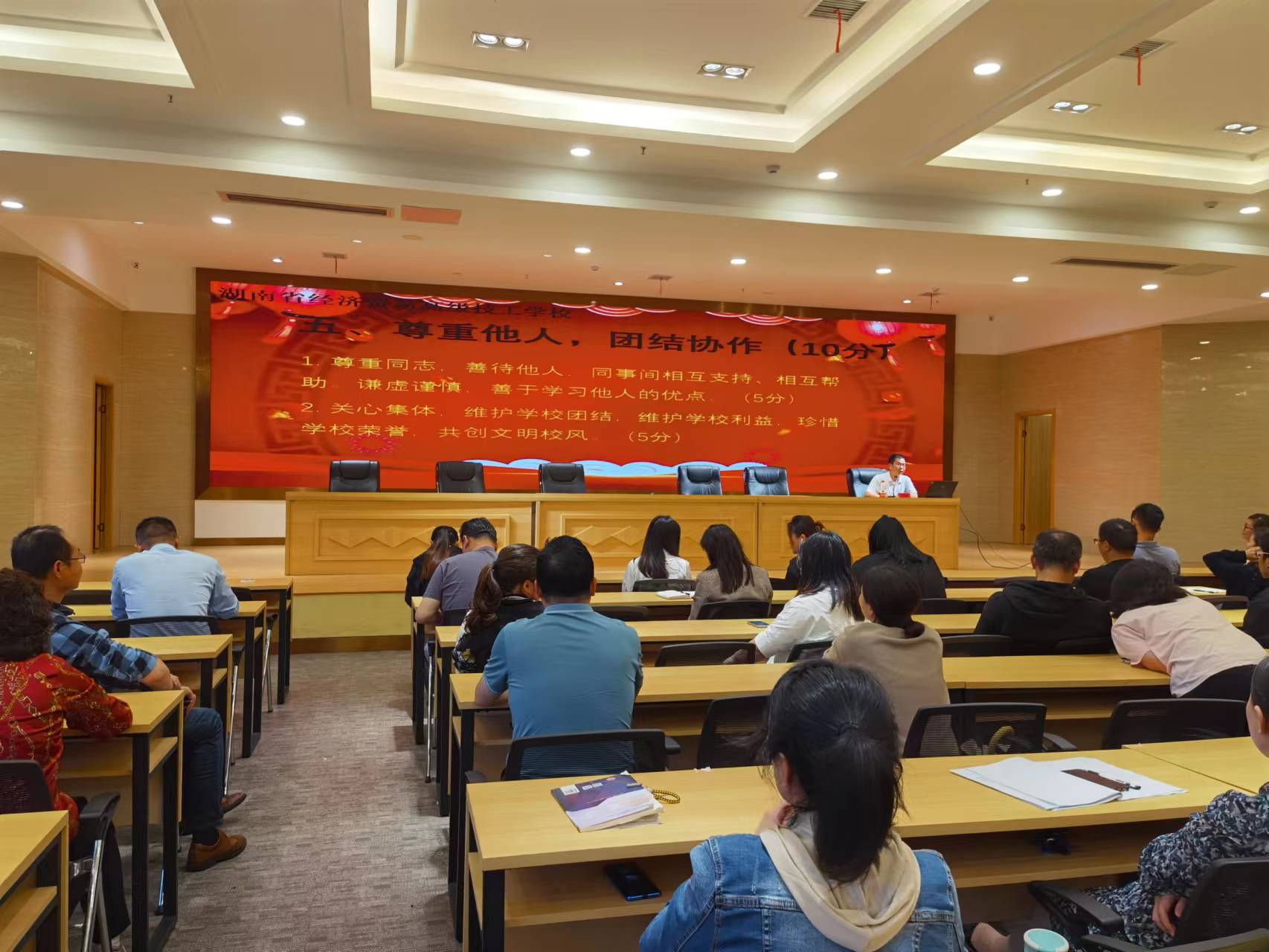 本次讲座中,张委员解读了2022年度《湖南省经济贸易高级技工学校师德师风考核制度》和评分细则,让全体教师了解考核内容、程序和评价方法。他强调:各位老师要从思想上认真严肃地对待本次考核,全体教职工要为人师表、依法从教,以习总书记提出的“四有”好老师的标准严格要求自己。