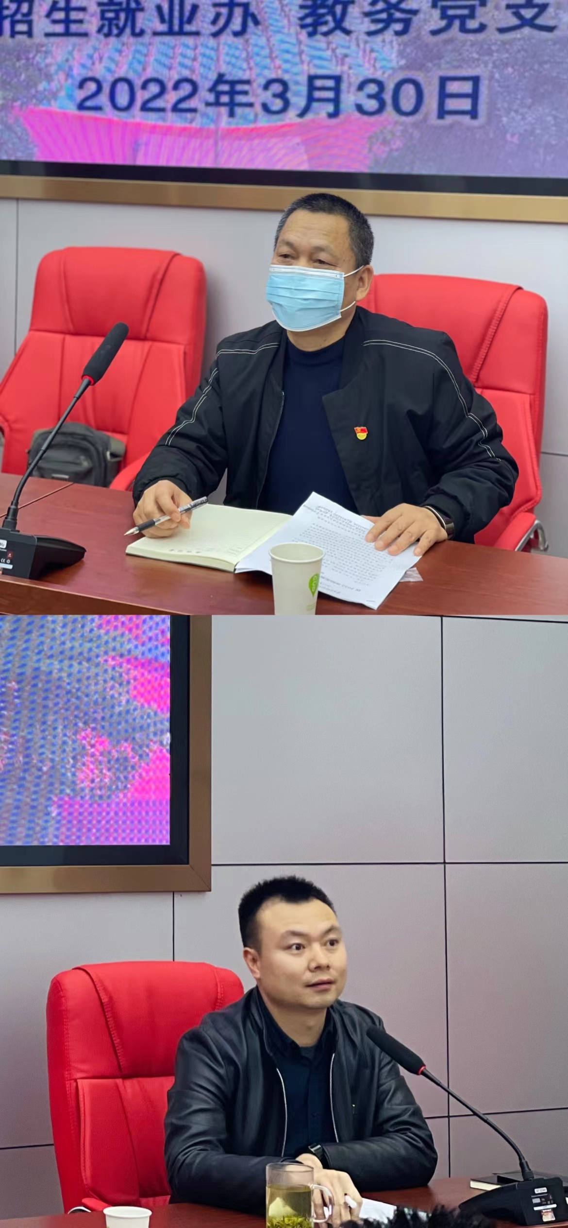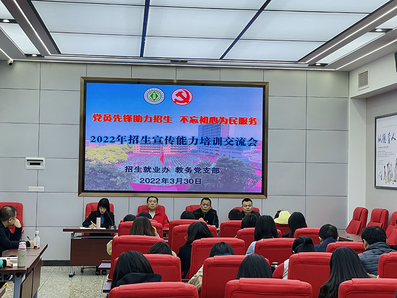 为了更好的落实和推动我校招生宣传工作,让新进教师更好的掌握和提升招生宣传能力,3月30日,招生就业办联合教务党支部以主题党日活动的形式,组织近两年学校新进教职员工在学校思政大课堂开展招生宣传业务能力的培训及招生经验的交流分享会。学校纪委书记、副校长伍嗣宏、教务党支部书记郝文革、招生就业办主任莫珍贵和近两年新进老师参加会议,会议由招生就业办副主任邓雅主持。