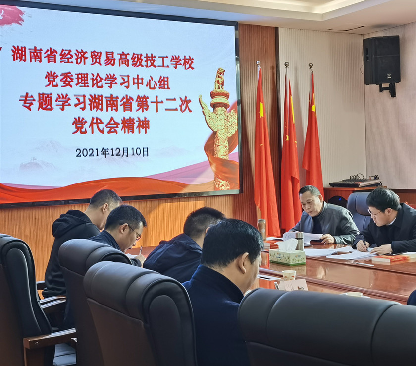 12月10日下午,校党委理论中心组举行专题学习会,集中学习研讨湖南省第十二次党代会精神,全体在校校领导、中层干部参会,会议由党委书记刘建伟主持。