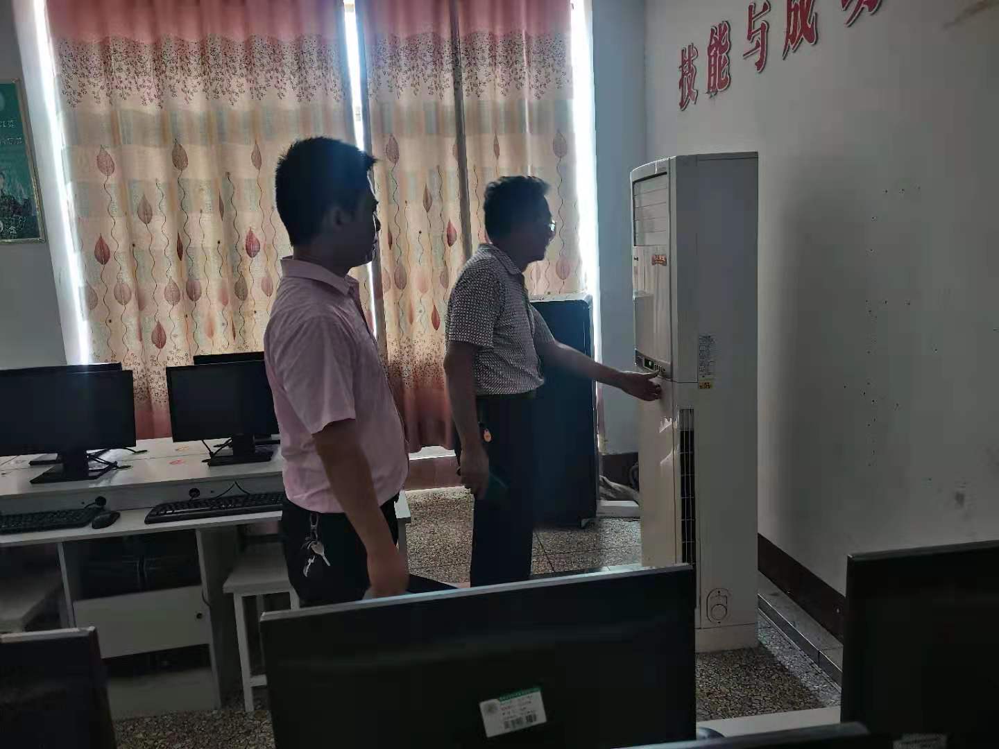 校党委书记刘建伟一行对教学楼、机房、实训室、配电站、水泵房、食堂、商店、电梯等重点区域设施设备运行状况进行安全隐患排查,排查中对存在问题的责任科室、责任人员提出了整改要求。