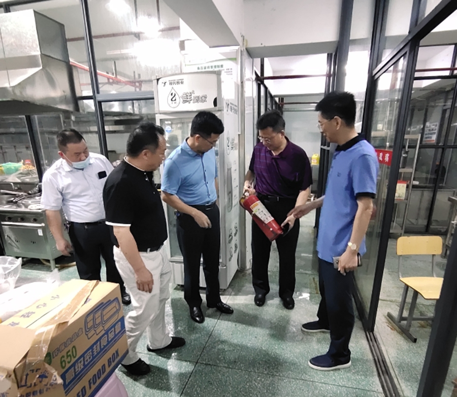覃局长一行对学校校园环境及食堂、实习实训教室、学生寝室等重点场所进行了仔细检查,对消防设施器材、食堂食材采购及经营、食品安全、水电气使用及安全情况等进行了检查和详细询问,并反复叮嘱学校要严格落实安全生产责任,做实做细各项基础工作,加强安全隐患排查。要坚决确保不发生安全生产责任事故,积极营造一个安全、和谐、稳定的干事创业环境,以优异成绩向建党100周年献礼。