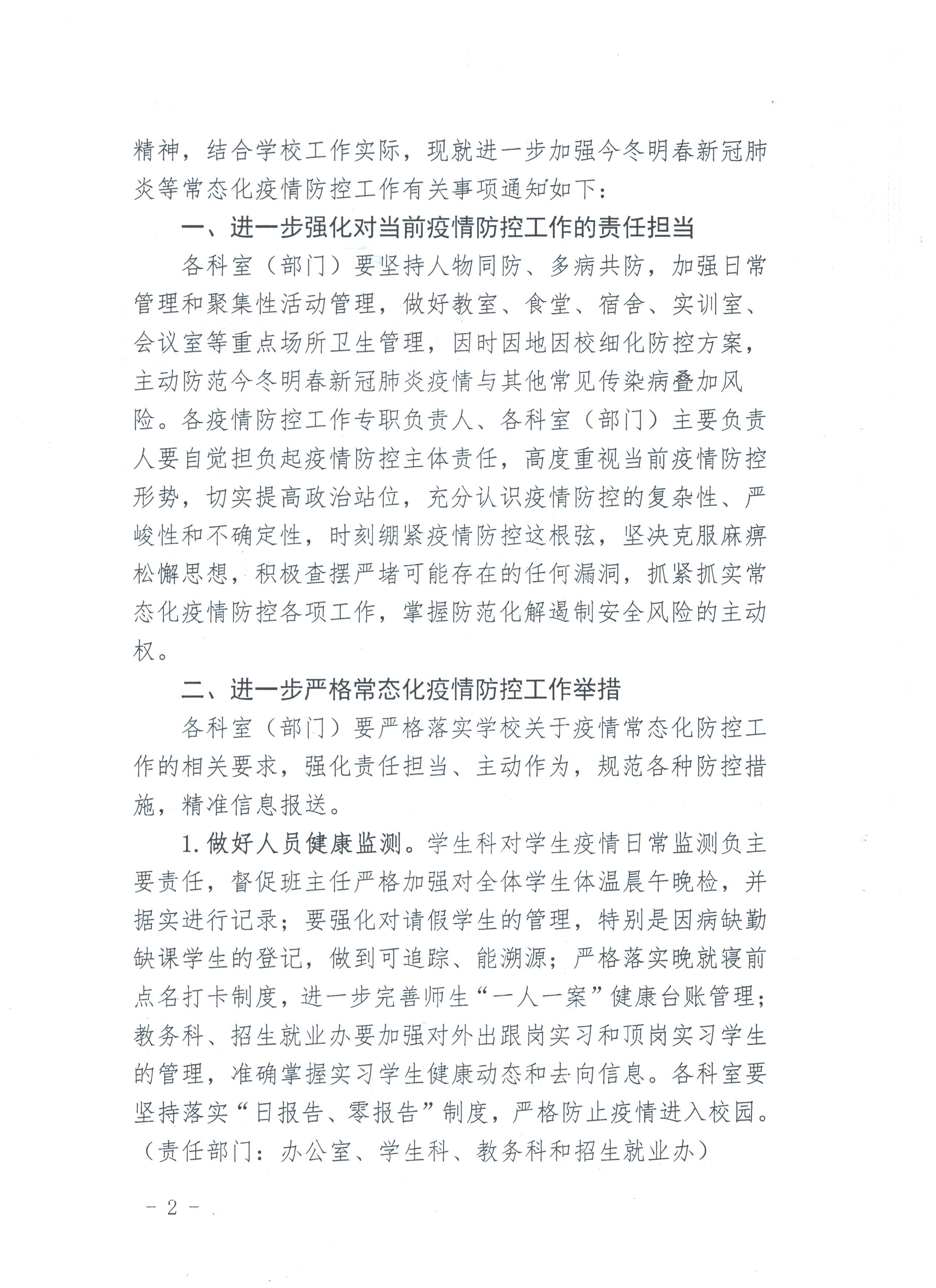 关于进一步加强今冬明春新冠肺炎常态化疫情防控工作的通知