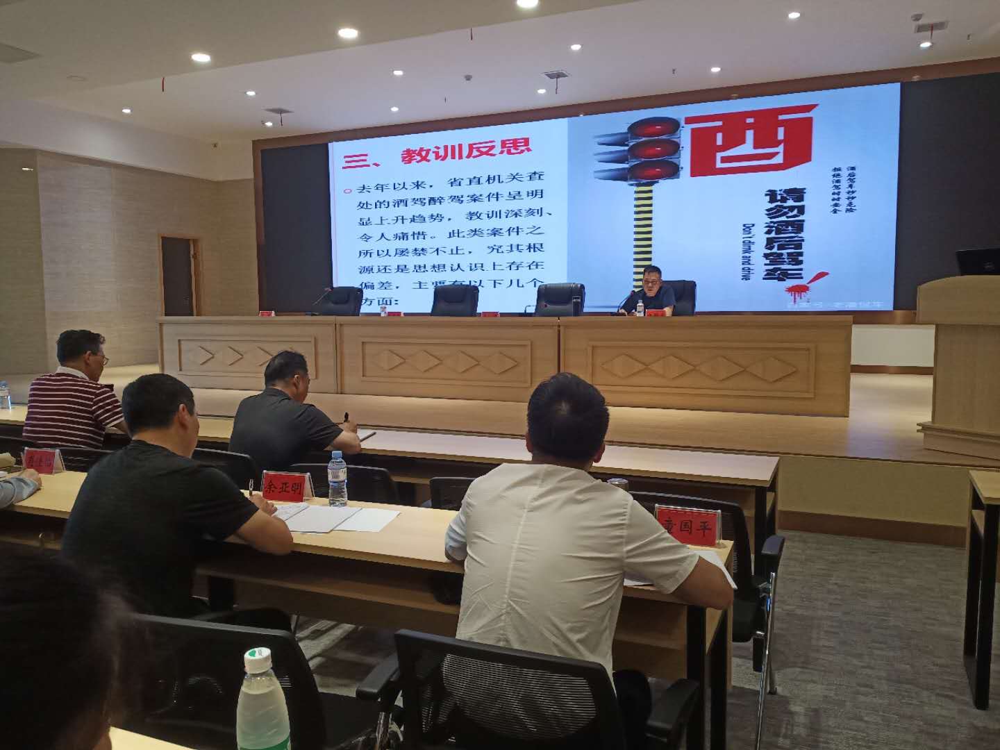 会上,大家观看了《叩问初心》警示教育片,纪委书记伍嗣宏领学上级纪委下发的《党员干部应与酒驾醉驾绝缘》、《关于进一步加强中等职业学校阳光招生工作的通知》等文件精神,强调《湖南省高中阶段学校招生工作“六条禁令”》、《深化整治形式主义官僚主义10条措施》,通报了中央纪委和湖南省纪委查处的多起违规案例。