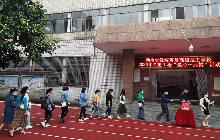 校长兰录平、党委书记肖评带头捐款,全体师生有序排队,积极奉献爱心,传递真情,此次募捐,全校共筹得爱心款7562元。