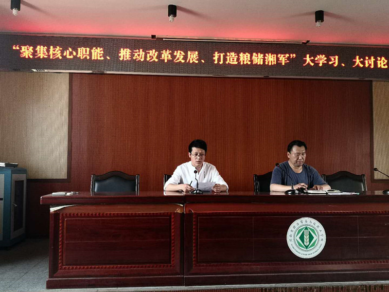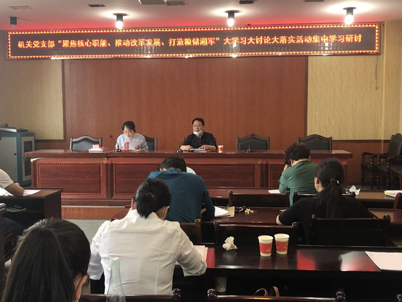 为深入学习贯彻习近平新时代中国特色社会主义思想,进一步巩固“不忘初心、牢记使命”主题教育成果,落实好湖南省粮食和物资储备局党组《“聚焦核心职能、推动改革发展、打造粮储湘军”大学习、大讨论、大落实活动实施方案》要求,3月17日—4月29日,学校党委先后召开动员部署会、工作推进会,党委中心组、各党支部先后开展两次集中学习专题研讨。4月21日,学校党委书记肖评再次主持中心组学习和专题研讨。