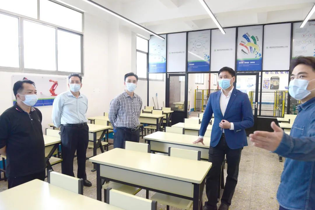 4月28日下午,省劳动人事职业学院院长徐厌平率该校招就处、商贸旅游系负责人来我校进行考察交流,洽谈校校合作事宜。兰录平校长和党委书记肖评率班子成员陪同徐院长一行首先参观了我校粮油综合实训大楼、汽修实训车间、机修实训车间和工业机器人实训室。随后,宾主双方在会议室进行了热情坦诚的会谈交流。