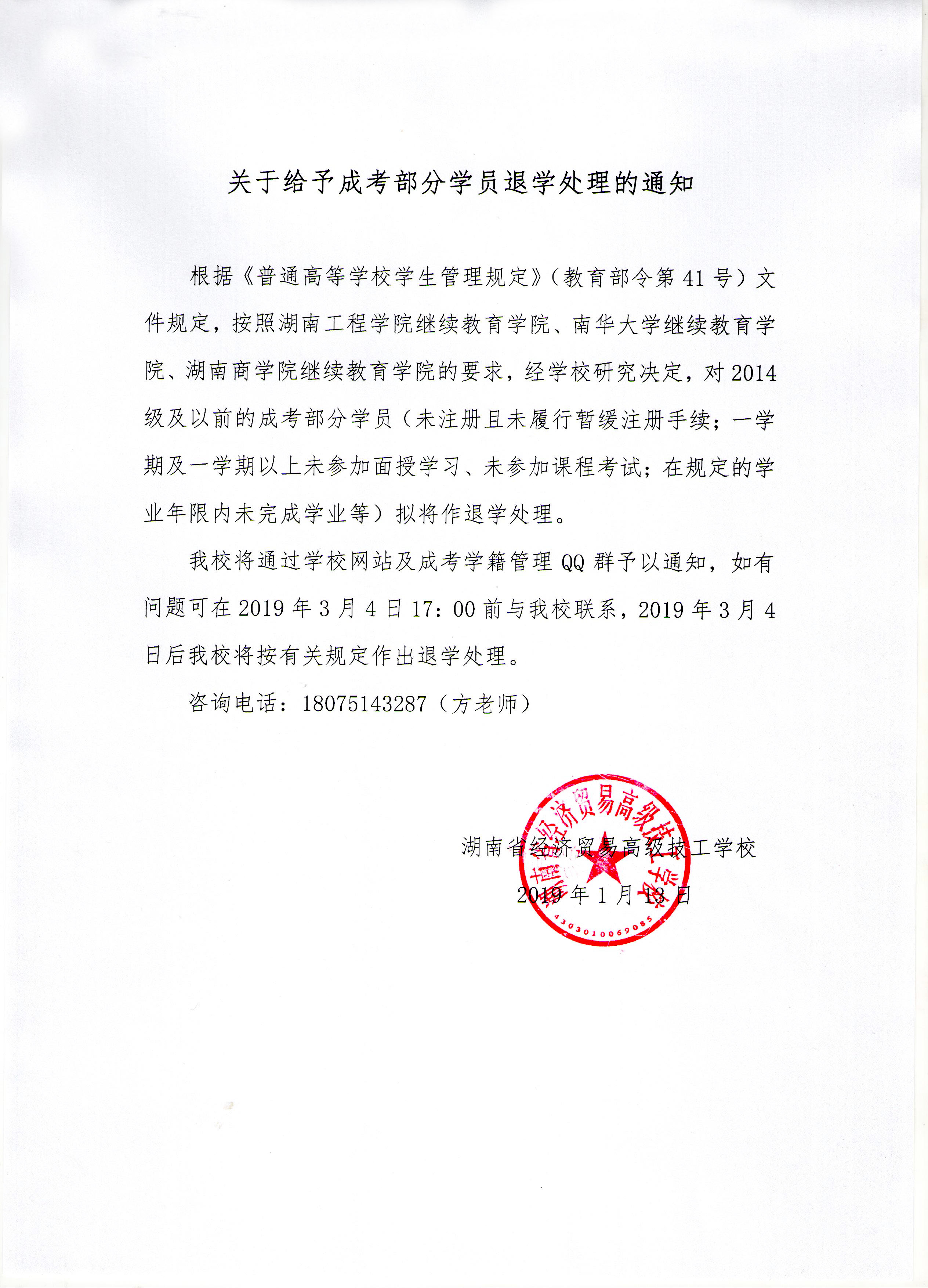 关于给予成考部分学员退学处理的通知