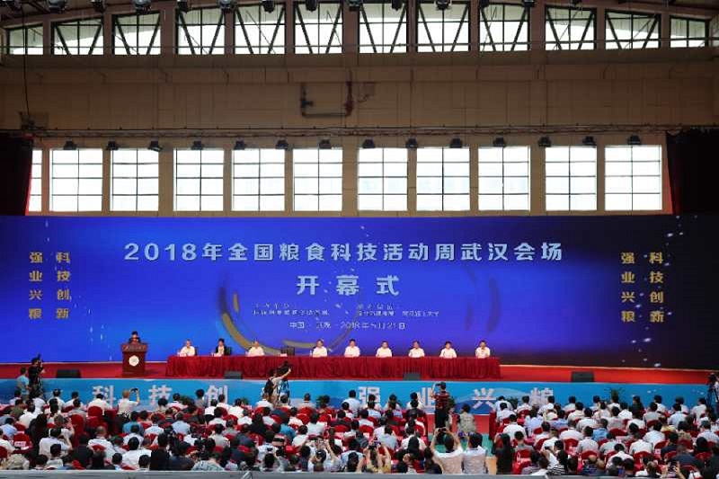 5月21日,2018年全国粮食科技活动周武汉会场活动开幕,活动周以“科技创新、强业兴粮”为主题,国家发展改革委党组成员,国家粮食和物资储备局党组书记、局长张务锋出席开幕式。