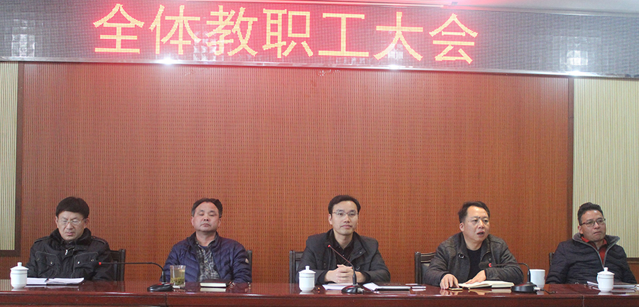 12月12日,我校在学术报告厅召开全体教职工大会。校长兰录平作工作报告,会议由党委书记肖评主持,全体校领导出席了会议。