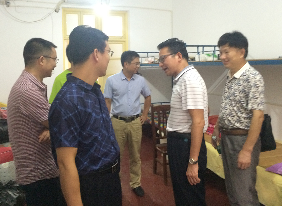 8月31日下午,我校党委书记兰录平等一行人来到省经贸电大校区,看望2017级新生军训情况,并慰问电大校区教师。过程中,校领导详细询问了新生报到,入住等情况,并十分关心教师的生活情况。期间,校领导一行走访了电大校区的教师寝室,与教师们进行了亲切交谈,仔细询问了教师的工作感受,饮食、住宿等生活情况。
