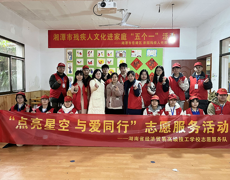 湖南省经济贸易高级技工学校志愿者服务队大力弘扬“奉献、友爱、互助、进步”的志愿者精神,积极救助贫困学生和帮扶弱势群体,活跃在爱心助学、关爱青少年、敬老助残、环境保护等一系列志愿者服务现场,为社会奉献热心和爱心。日后,我们将持续开展关爱自闭症群体志愿服务活动,利用自己的休闲时间来这里陪伴他们,给他们更多的关爱和鼓励,一起帮助孤独症患者的成长。