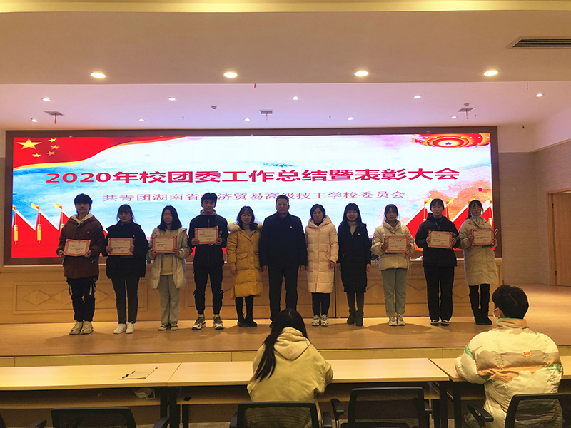 1月7日下午,我校于粮油实训综合大楼三楼会议室召开共青团湖南省经济贸易高级技工学校委员会2020年工作总结表彰大会。校党委书记刘建伟出席会议,团委书记吴玉婷、团委干事张秀、肖文潇,学生团干和各班团支书参加会议。