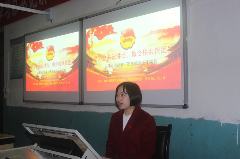 随后,吴书记就基层团组织如何围绕“学习总书记讲话,做合格共青团员”主题教育实践活动进行了生动地讲解。她向学员们传达了习近平总书记关于加强和改进党的群团工作的系列重要讲话精神、解读了《共青团中央改革方案》,指出当前共青团改革的目标是去“四化”、强“三性”。通过加强基层团组织建设来保持和增强团组织的政治性、先进性、群众性,使团干部更像团干部,团员更像团员,让团的基层组织更具活力,切实增强从严治团的思想共识和行动自觉。在团课中,吴书记重点指出了“三会两制一课”对团组织的重要性,同时她对团支部的组成及其职责、团员发展、团员团干部的管理等团支部工作实务进行了细致入微的讲解。