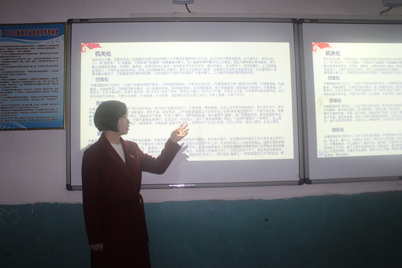 课上,吴书记首先播放了《青年网络公开课之活的马克思主义》,通过这段视频让同学们对马克思主义有基本的认知,认识到中国共产党把马克思主义中国化后“为人民服务”的价值观,勉励团员青年们争做既能遥望星空的理想主义者,更要做一个能踏实耕耘,勤奋劳作的现实主义当代青年,从严要求自己的行为,争做有自信、有担当、有大爱的青年一代!