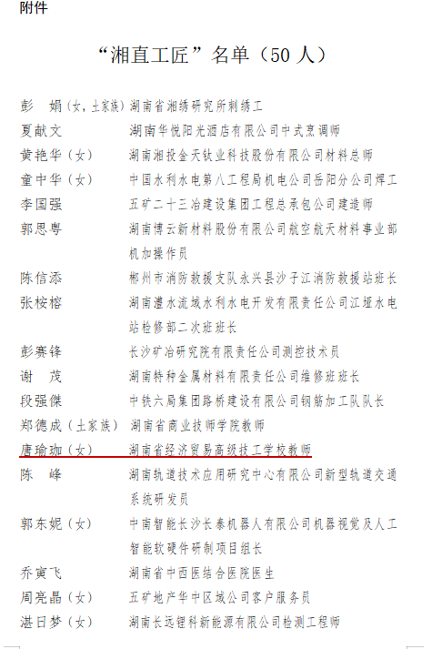 龙腾虎跃展宏图,春色满园事业昌。2024年新学期伊始,我校即收到唐瑜珈老师荣获“湘直工匠”荣誉的喜讯。