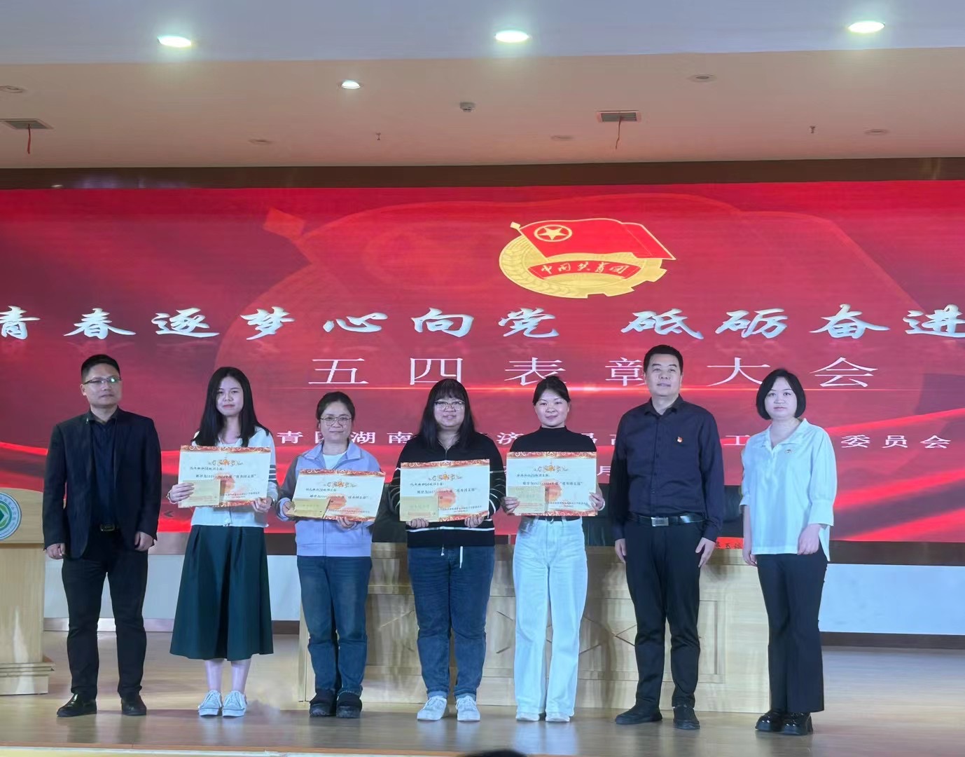 为纪念五四运动105周年,建团102周年,4月26日晚7时,湖南省经济贸易高级技工学校在粮油实训大楼多功能厅举行纪念五四运动105周年表彰大会暨“挺膺担当·逐梦青春”演讲比赛。学校党委委员、副校长肖力青,教务科科长张淼,党办主任、团委书记吴玉婷出席大会。