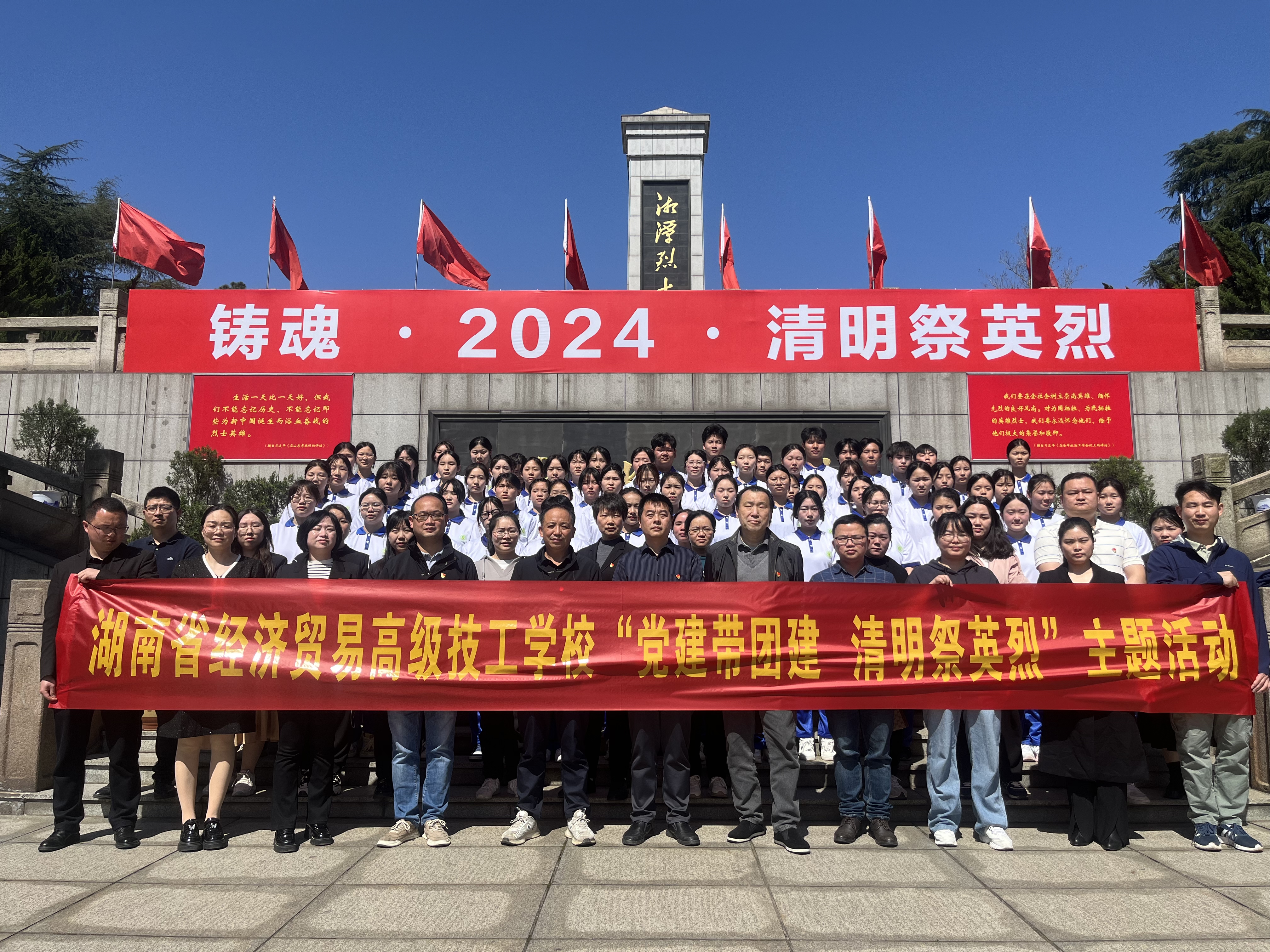此次清明祭英烈活动的开展,不仅是一次心灵的洗礼,更是一堂生动深刻的革命传统教育和爱国主义教育思政课。今天,我们将以革命先烈为榜样,学习革命先烈无怨无悔的追求精神、百折不挠的战斗精神、大公无私的奉献精神,为党育人,为国育才,在职业教育事业的长河中,湖南省经济贸易高级技工学校这艘乘风破浪的航船,定将用好红色资源、赓续红色血脉,让师生永怀报国之志,为中华民族伟大复兴贡献自己的力量!