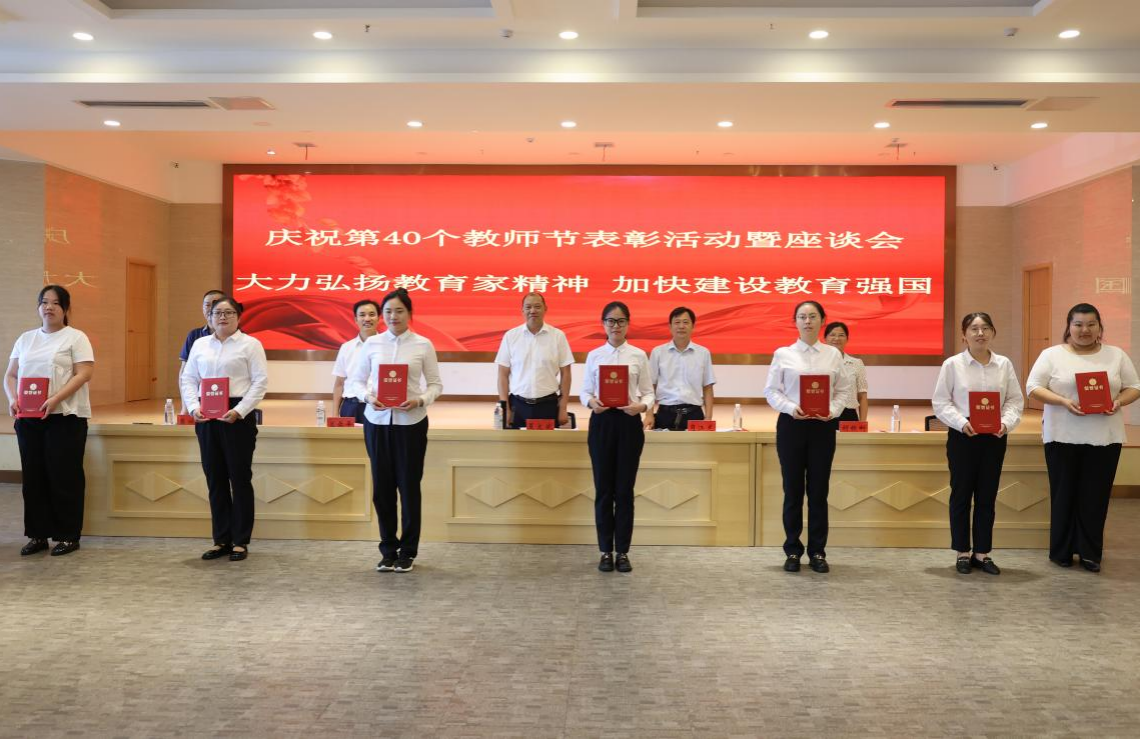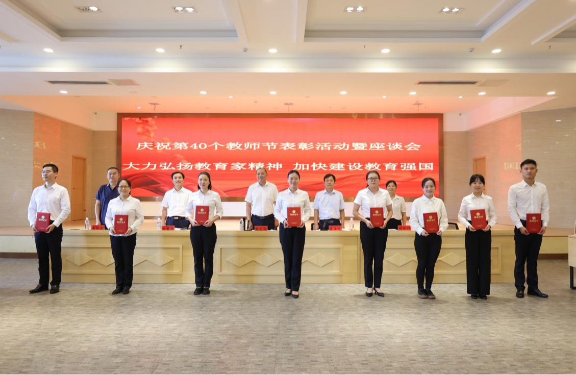 最是一年好光景,桃李争芳果满园。9月9日上午,学校庆祝第40个教师节表彰活动暨座谈会在多功能厅隆重举行。省发展和改革委党组成员,省粮食和物资储备局党组书记、局长夏文斌,党组成员、副局长肖江龙及办公室、财务处、人事处负责同志来校与全体师生共同庆祝第40个教师节。参加座谈会的还有学校领导、优秀教师、优秀班主任及部分中层干部。会议由省粮食和物资储备局党组成员、副局长肖江龙主持。