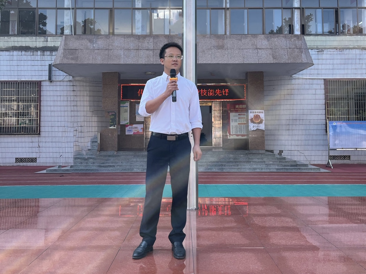 校长童国平以“匠心筑梦启新程,技能报国正当时”为主题讲开学思政第一课。童校长指出一代代经贸人薪火相传、砥砺前行,学校办学能力、办学水平持续攀升,人才培养水平、人才培养质量持续向好,培养出唐瑜珈老师、谭容同学成为湖南省技能冠军,也有刘飞洋、蒋思维、冯棋同学取得全国粮食行业大赛金牌,社会影响力、社会知名度持续增强。他向学生提出三点希望:一要自律自强,磨炼意志;二要全面发展,塑造品格;三要刻苦学习,提升技能;四要健康生活,快乐成长。童校长强调,全体师生要不断将个人发展融入学校和时代的发展,积极投身到为祖国的繁荣富强而奋斗的征程中。