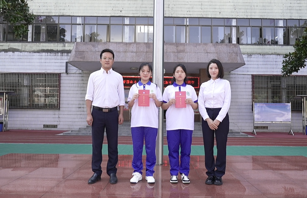 最后,校长童国平、唐瑜珈老师为荣获2024年“楚怡杯”湖南省职业院校技能竞赛饲料营养与检测赛项二等奖的学生粮油35班的徐琪、食品30班的谢可佳颁奖。