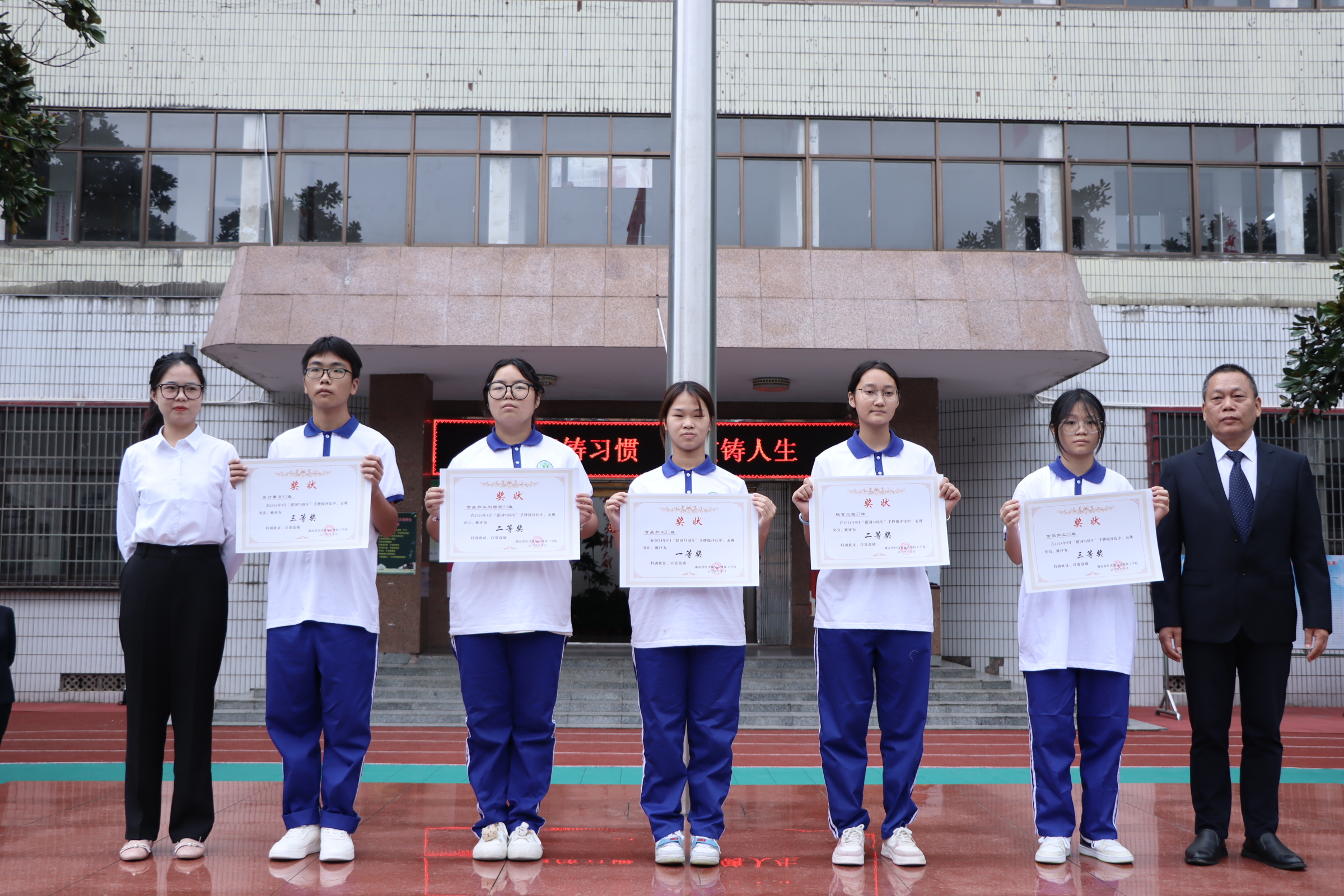 最后,伍校长、刘老师为荣获9月份黑板报、手抄报、文明寝室和文明教室的获奖班级颁奖。