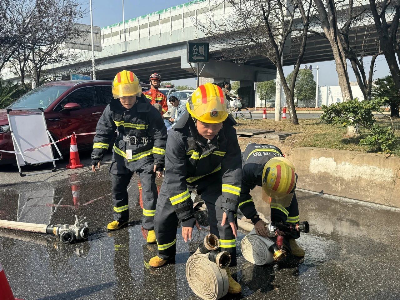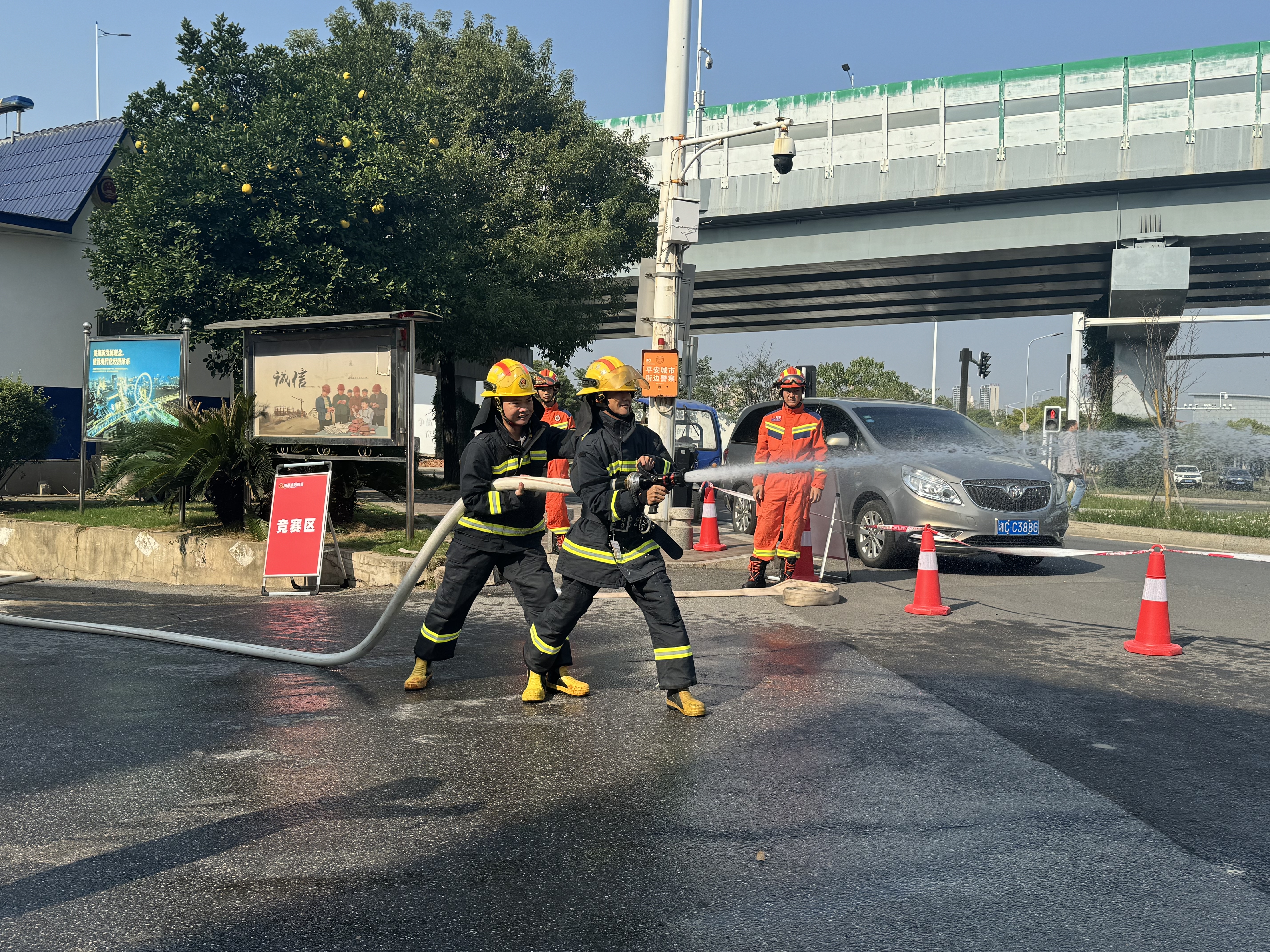 此次比武内容丰富且极具挑战性,涵盖了消防水带铺设连接、灭火器使用等关键消防技能项目。在消防水带铺设连接项目中,我校参赛队员身手矫健,以迅雷不及掩耳之势展开行动,仅用了18秒就高质量地完成了任务,这一速度远超活动现场平均水平。而在灭火器使用环节,我校队员更是表现出色,在短短6秒内就准确操作灭火器,迅速扑灭火焰。最终我校参赛团队凭借默契的配合、扎实的功底获得团体总分第一名的好成绩。