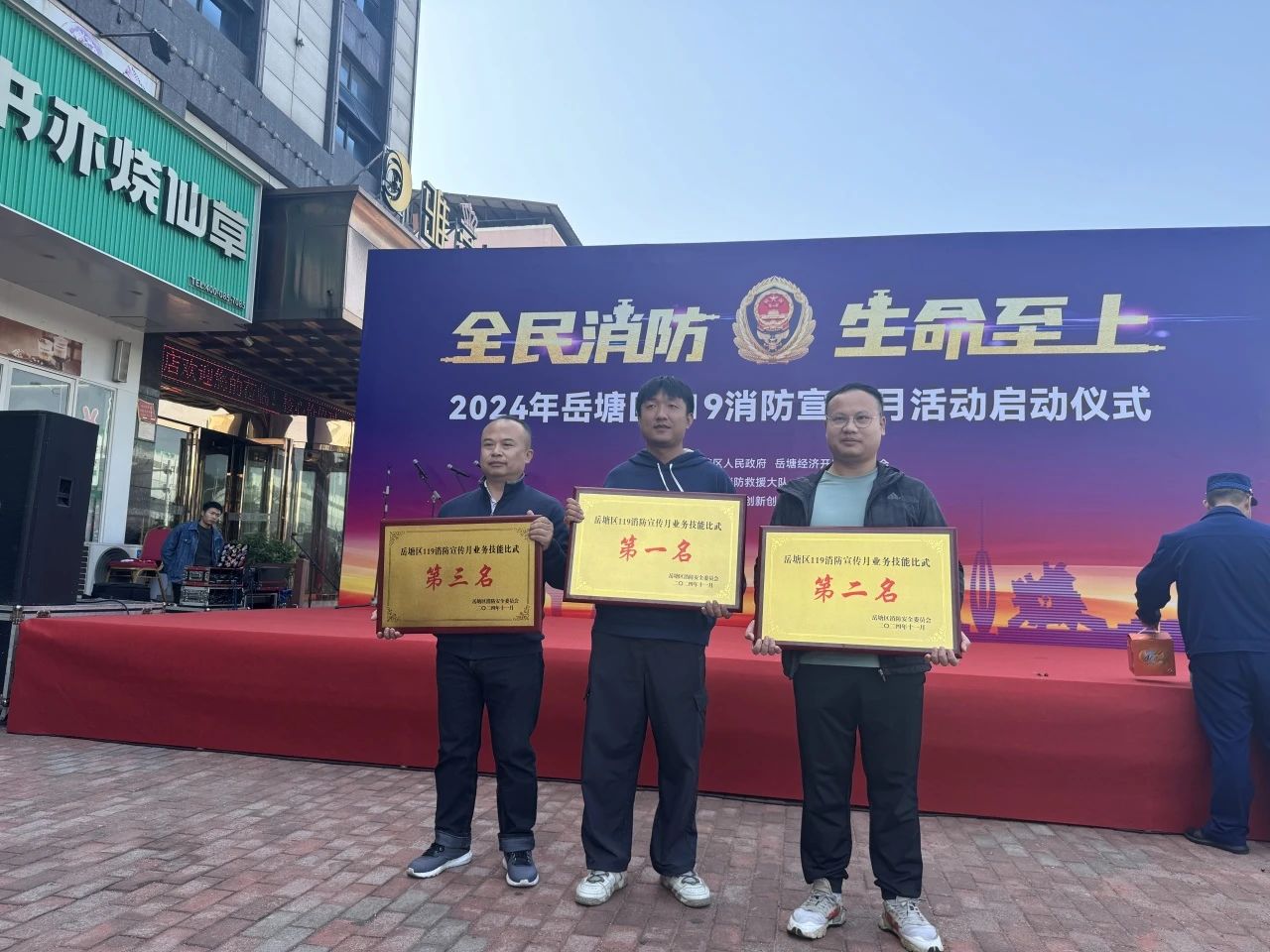 为全面提升学校消防人员业务技能水平,11月6日,我校参加了由岳塘区救援大队组织的岳塘区119消防宣传月业务技能比武活动。活动现场,由综治办主任李义带队的6名消防志愿者,经过激烈的角逐,在十二参赛队伍中脱颖而出,获得岳塘区119消防宣传月业务技能比武第一名,展现出非凡的实力与风采。