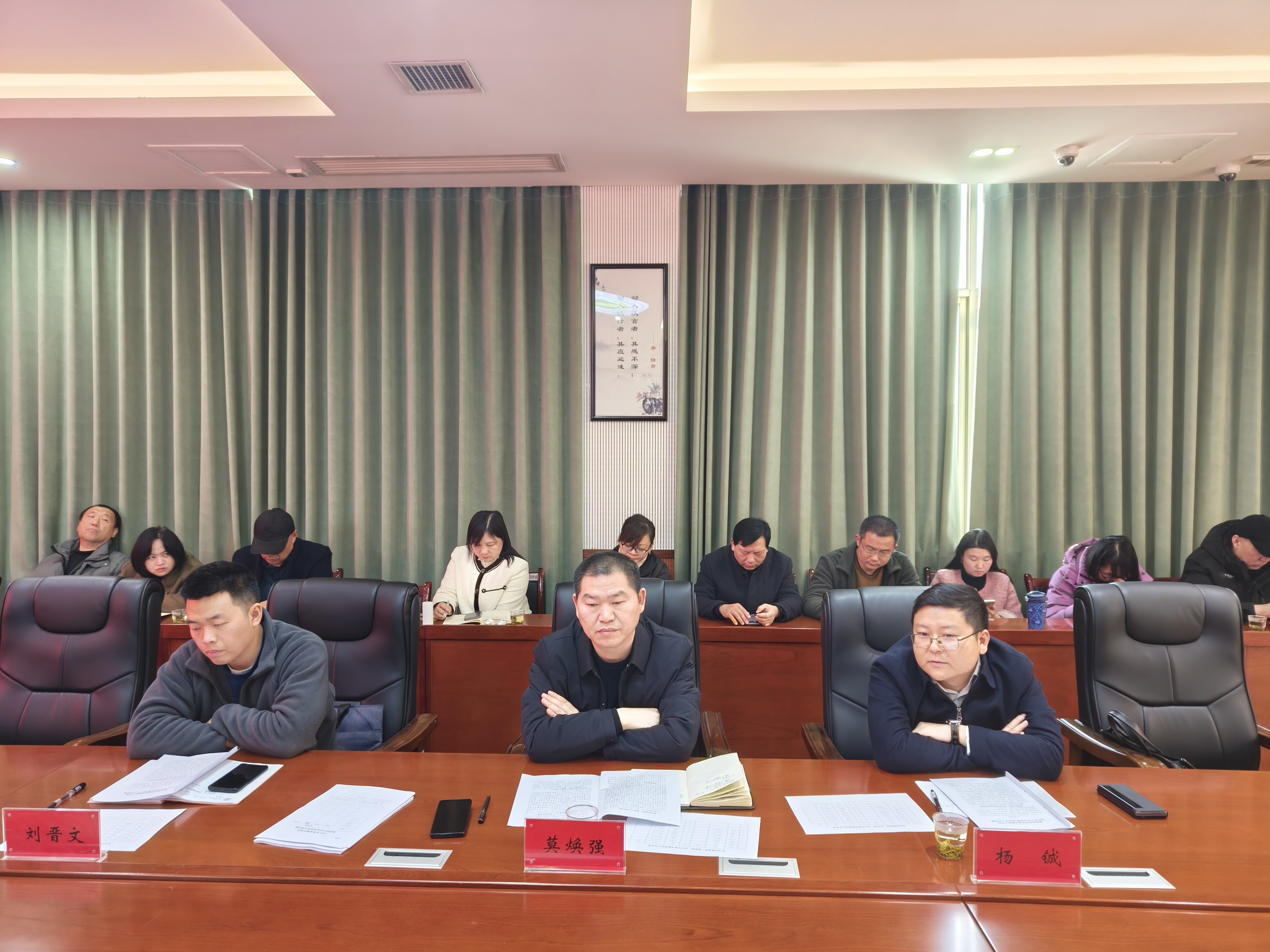 莫焕强同志一行认真听取了童国平校长的工作汇报,查看了学校党建、档案管理等工作,对学校一年来取得的成绩给予了充分肯定,同时,希望全体教职员工在学校领导班子的带领下,精诚团结,众志成城,凝心聚力,砥砺前行,在新的一年里取得更大成就。
