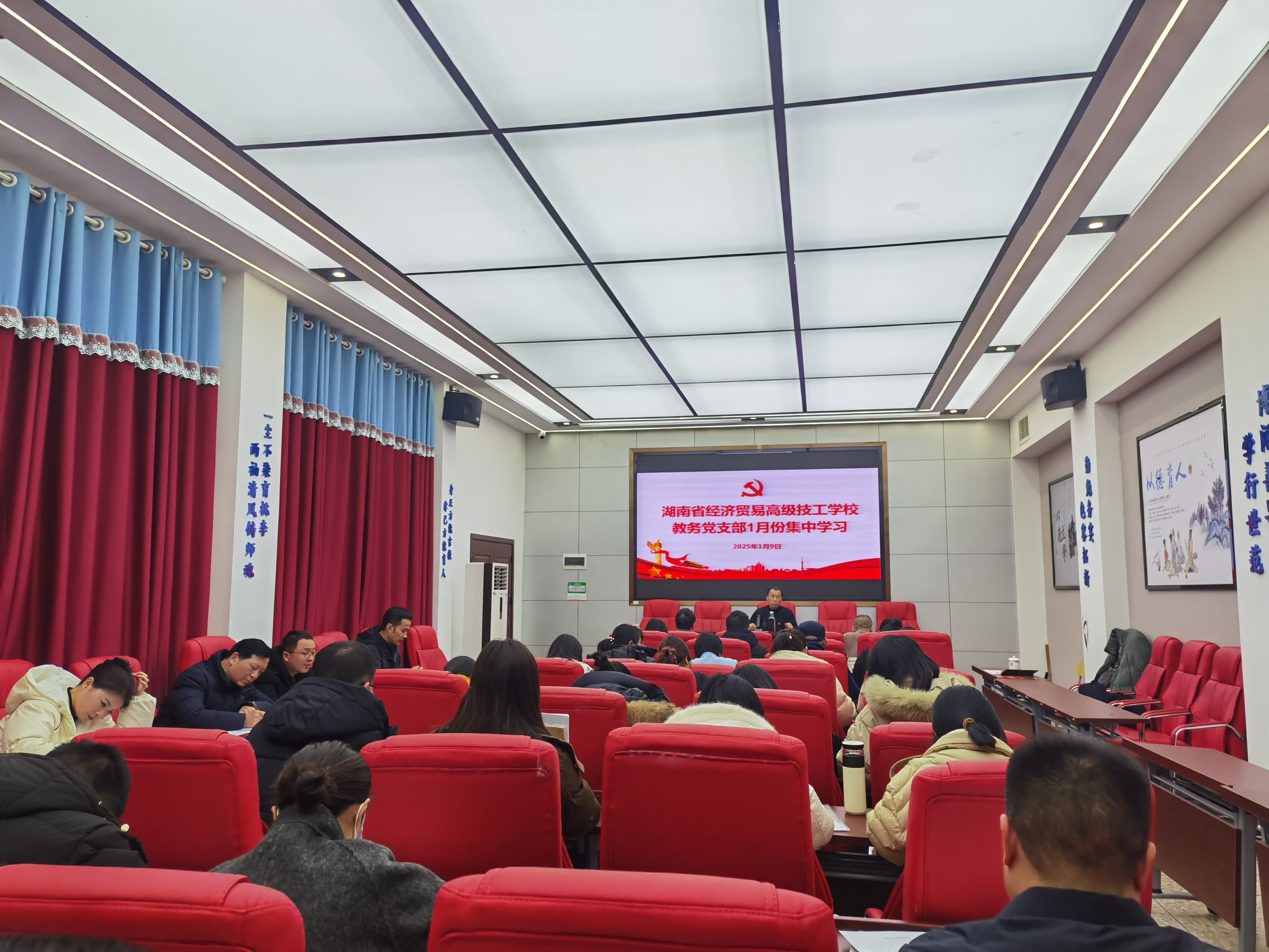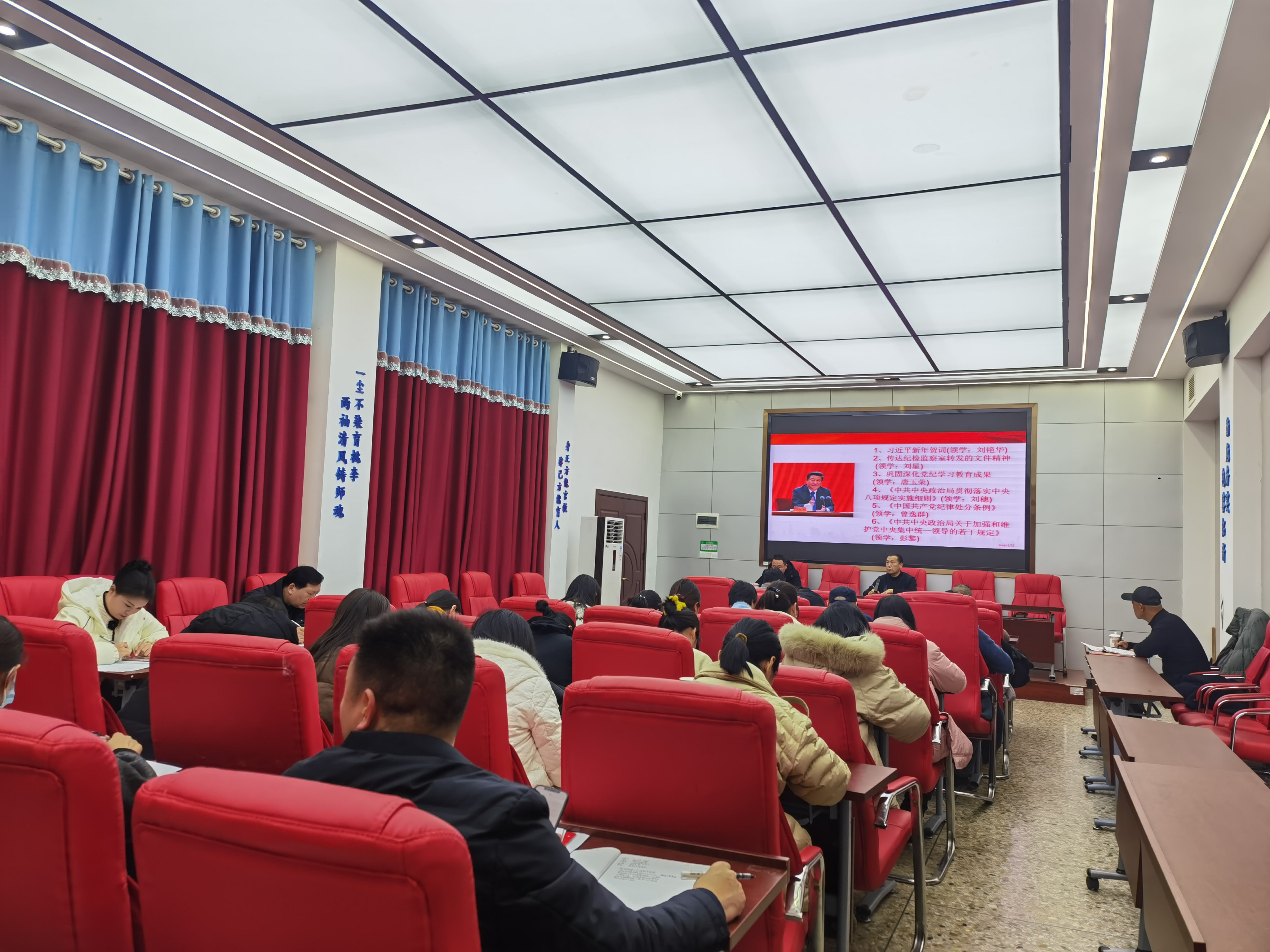 为了深入贯彻落实习近平总书记的新年贺词精神,进一步加强党纪党规教育,积极响应中央八项规定实施细则,1月9日下午,我校教务党支部在思政大讲堂组织开展系列学习活动,全体党员、积极分子和发展对象参加。