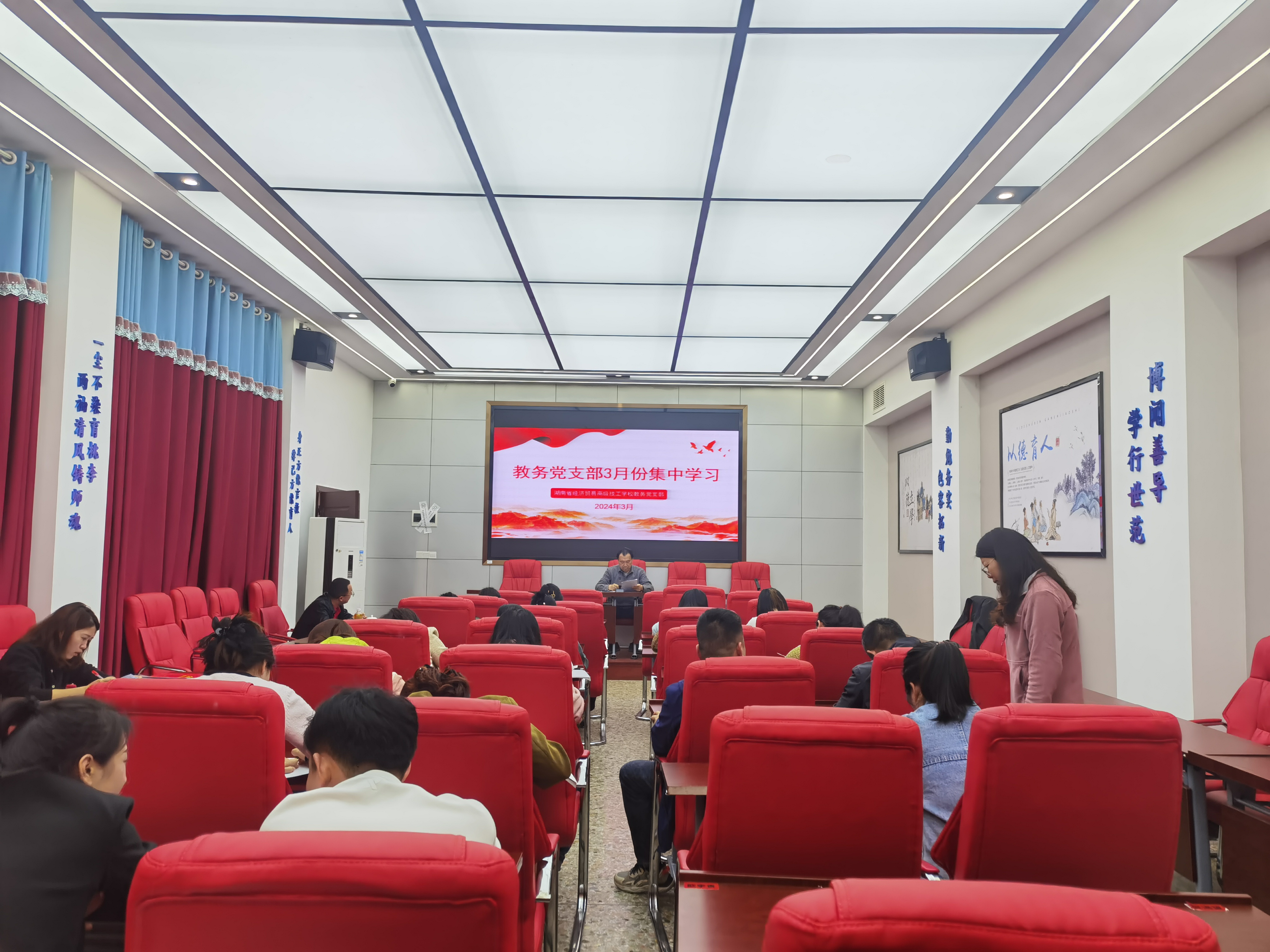 3月28日下午,我校教务党支部在思政大讲堂组织开展3月份集中学习,会议由党支部书记郝文革主持,全体党员、积极分子以及发展对象参加。