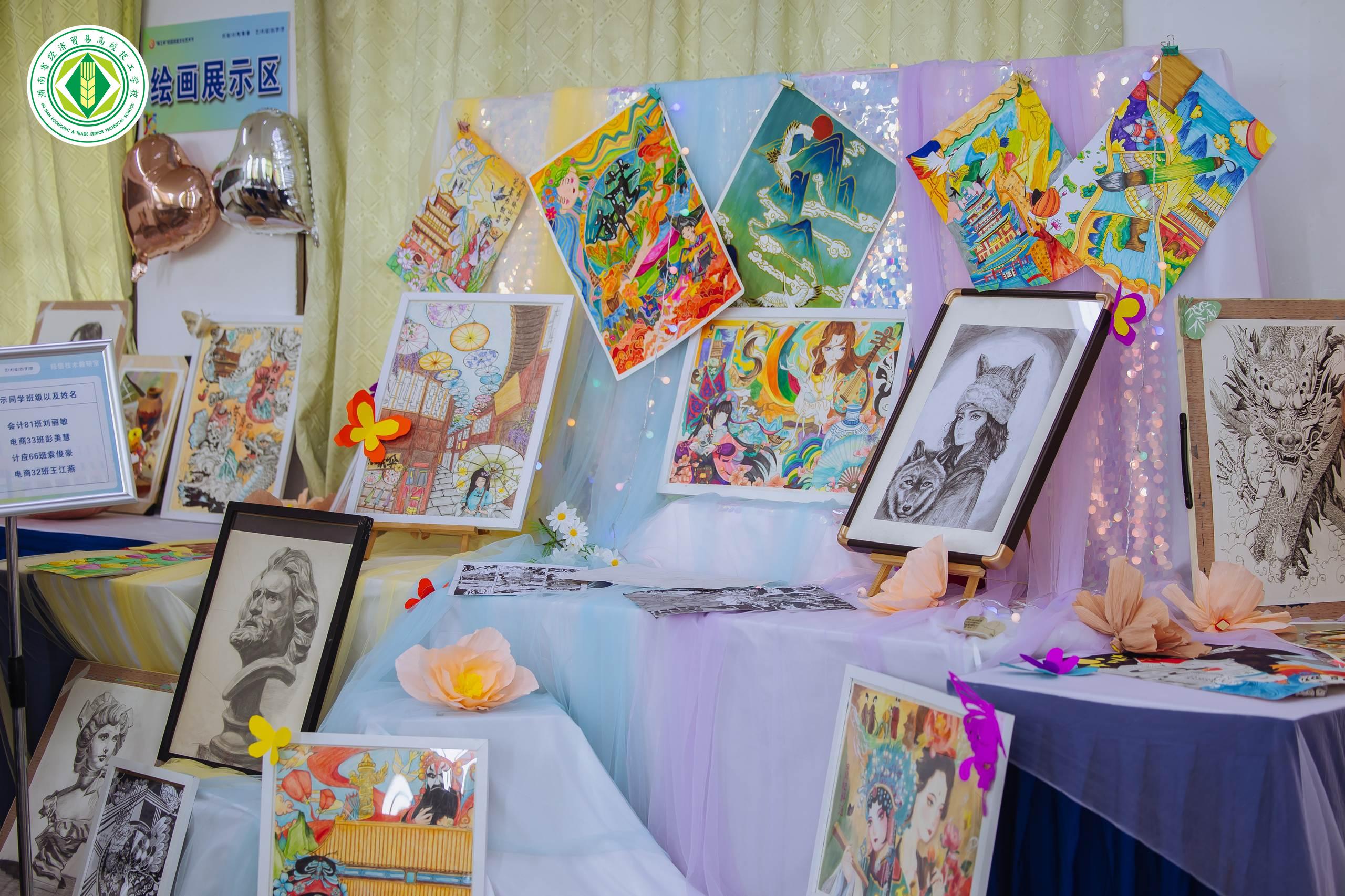 图书馆101教室内放着大量精美的学生美术造型作品,同时有几名同学在现场进行绘画创作。这些作品不仅是美育成果,更是视觉设计的灵感沃土与技能基石,艺术和技能在此交融。
