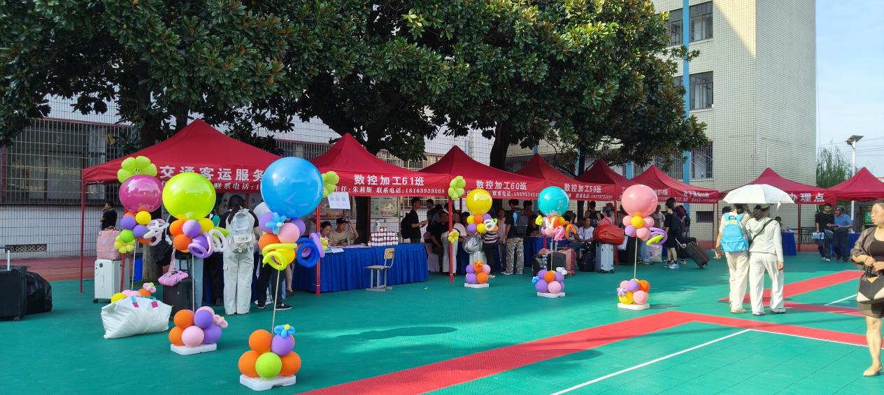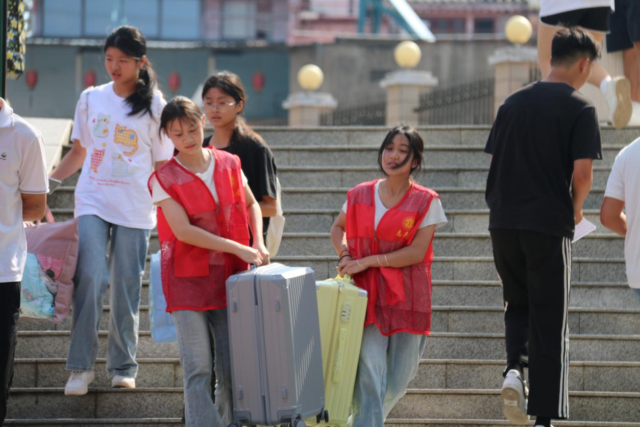 迎新通道上,一抹抹“经贸红”来回穿梭: