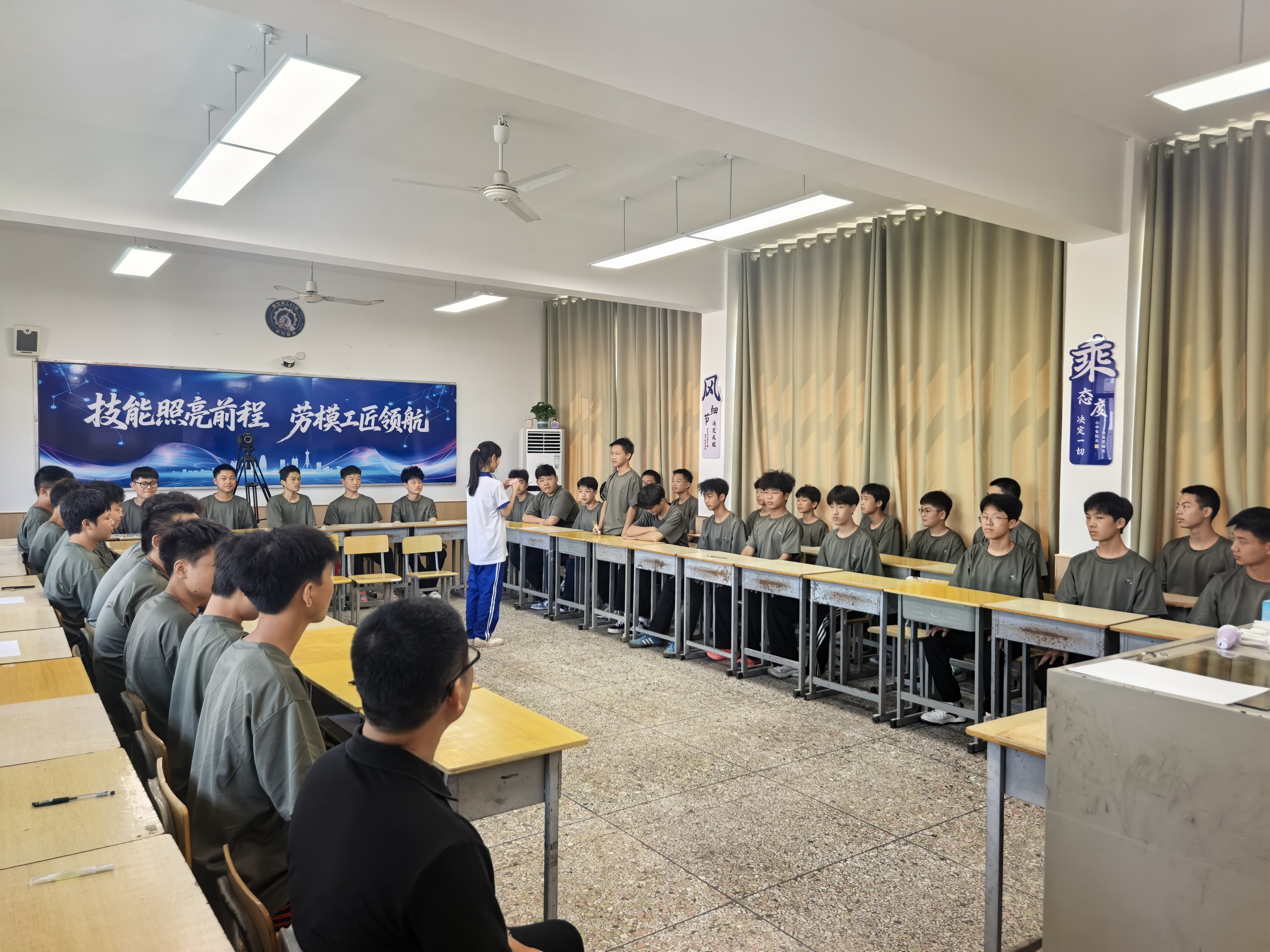 根据《人社部关于在技工院校开展2025年秋季学期开学第一课活动的通知》,为大力弘扬劳模精神、劳动精神、工匠精神,引导学生树立正确的成才观、职业观和就业观,9月8日上午,学校联合湘潭市人社局举办“技能照亮前程 劳模工匠领航”秋季开学第一课主题活动。市人社局职建科科长潘浩、学校副校长肖力青、教务科科长张淼等相关同志参加活动。