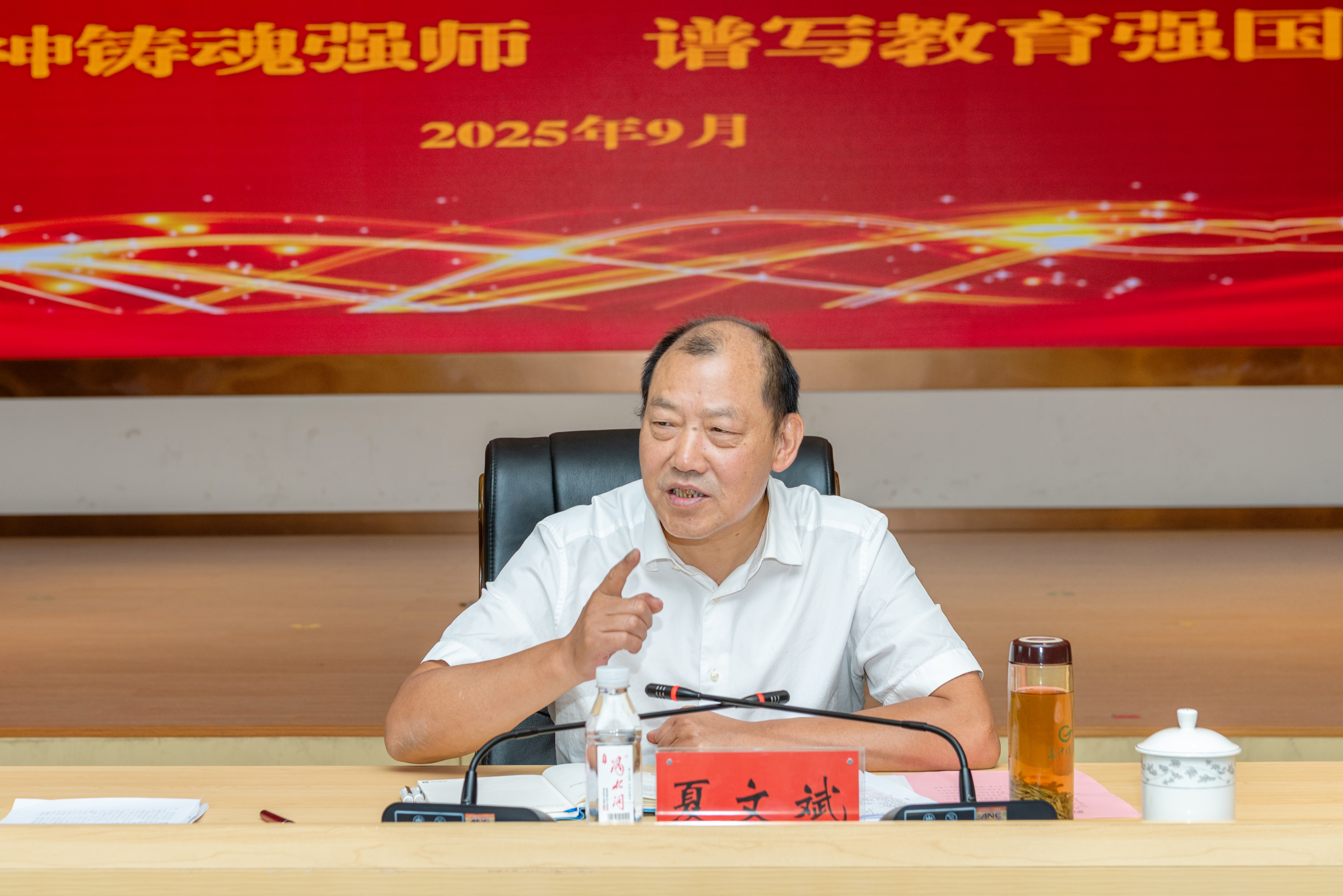 夏局长代表省局党组向学校发放节日慰问金后,向全体教师致以节日问候,对受表彰的教师表示热烈祝贺,并发表了题为《坚守粮储初心 锻造职教铁军》的讲话。他表示学校从政治引领到人才培养,从师资建设到技能竞赛,从招生就业到后勤保障,从校企合作到教学改革,各项工作学校都取得了显著进步,成绩的取得离不开全体教职工的努力和付出。